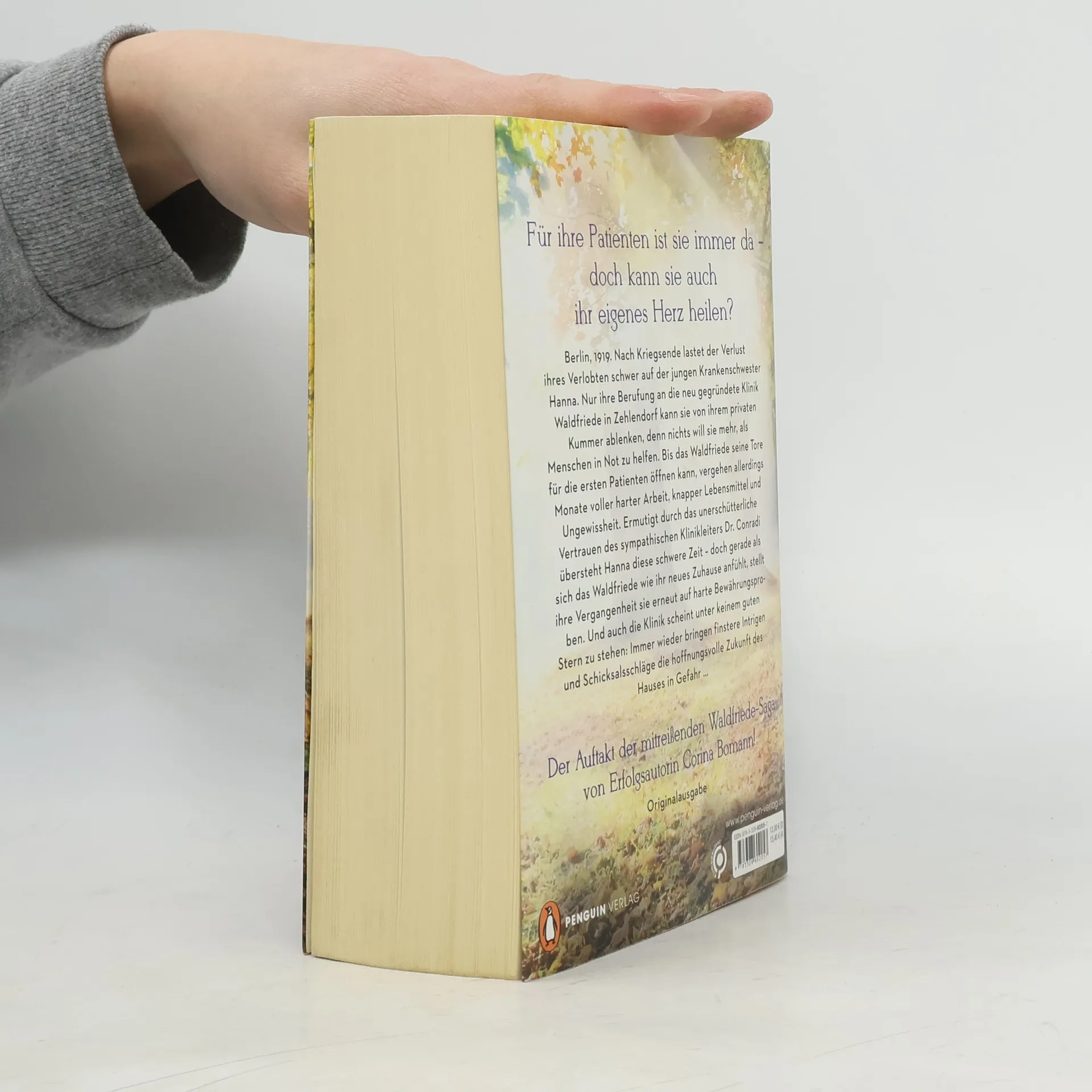 Der Beginn einer mitreißenden Saga von Bestsellerautorin Corina Bomann: Berlin, 1919. Nach dem Krieg belastet der Verlust ihres Verlobten die junge Krankenschwester Hanna schwer. Ihre Berufung an der neu gegründeten Klinik Waldfriede in Zehlendorf bietet Ablenkung, denn sie möchte Menschen in Not helfen. Doch bis die Klinik ihre Türen für die ersten Patienten öffnet, vergehen Monate voller harter Arbeit, knapper Lebensmittel und Ungewissheit. Hanna wird durch das unerschütterliche Vertrauen des Klinikleiters Dr. Conradi gestärkt und meistert diese herausfordernde Zeit. Doch als sich das Waldfriede wie ihr neues Zuhause anfühlt, wird sie erneut von ihrer Vergangenheit geprüft. Zudem steht die Klinik unter keinem guten Stern: Immer wieder gefährden Intrigen und Schicksalsschläge die hoffnungsvolle Zukunft des Hauses. Inspiriert von wahren Begebenheiten erzählt die Erfolgsautorin von der Entstehung der Berliner Waldfriede-Klinik. Entdecken Sie die weiteren Bände der fesselnden Saga, die auch einzeln lesbar sind.