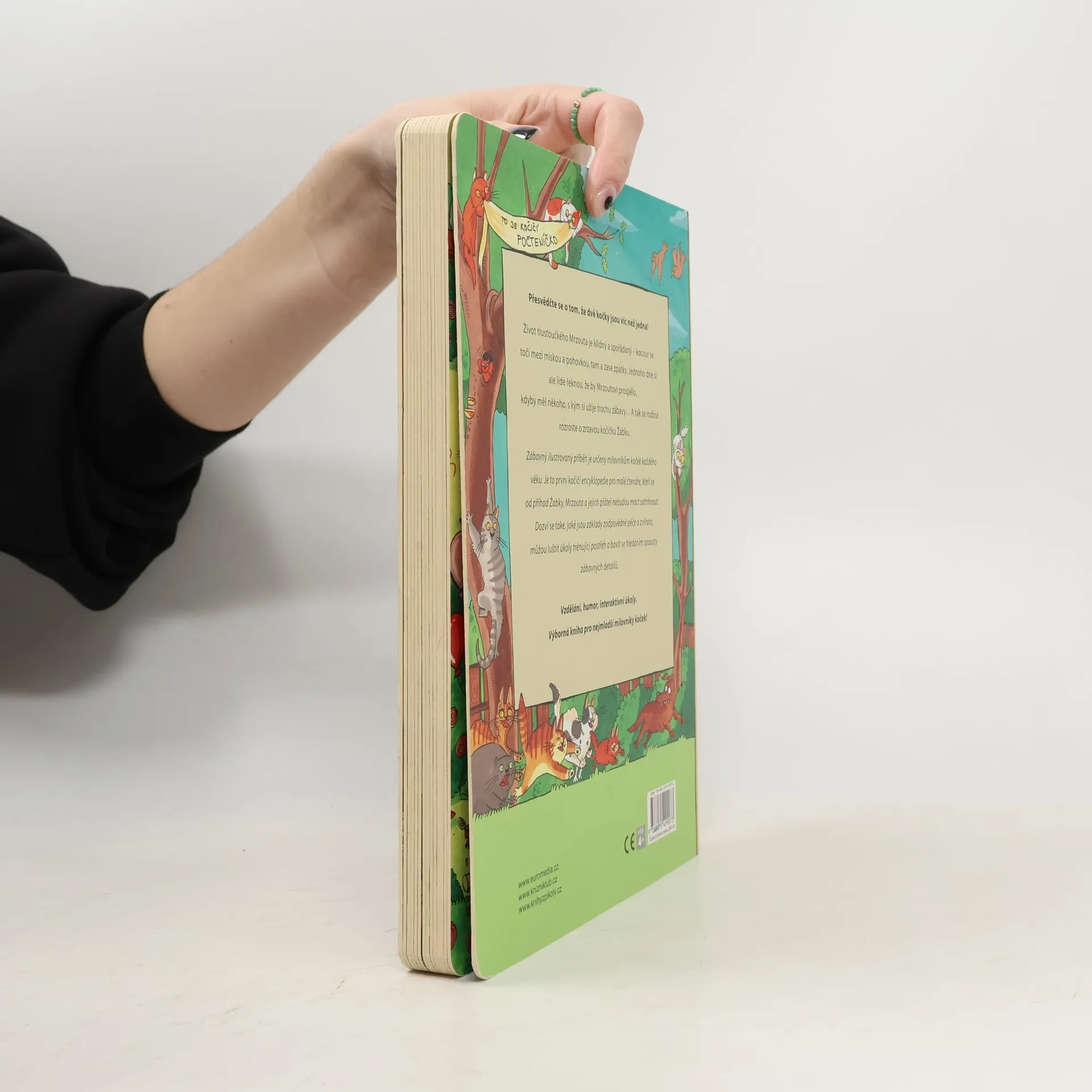 Vzdělání, humor i interaktivní úkoly najdou děti v úžasném leporelu plném koček a kocourů. Zábavný ilustrovaný příběh je určený milovníkům koček každého věku. Je to první kočičí encyklopedie pro malé čtenáře, kteří se od příhod Žabky, Mrzouta a jejich přátel nebudou moct odtrhnout. Zároveň se dozví, jaké jsou základy zodpovědné péče o zvířata, můžou luštit úkoly trénující postřeh a bavit se hledáním spousty zábavných detailů. Přesvědčte se o tom, že dvě kočky jsou víc než jedna!