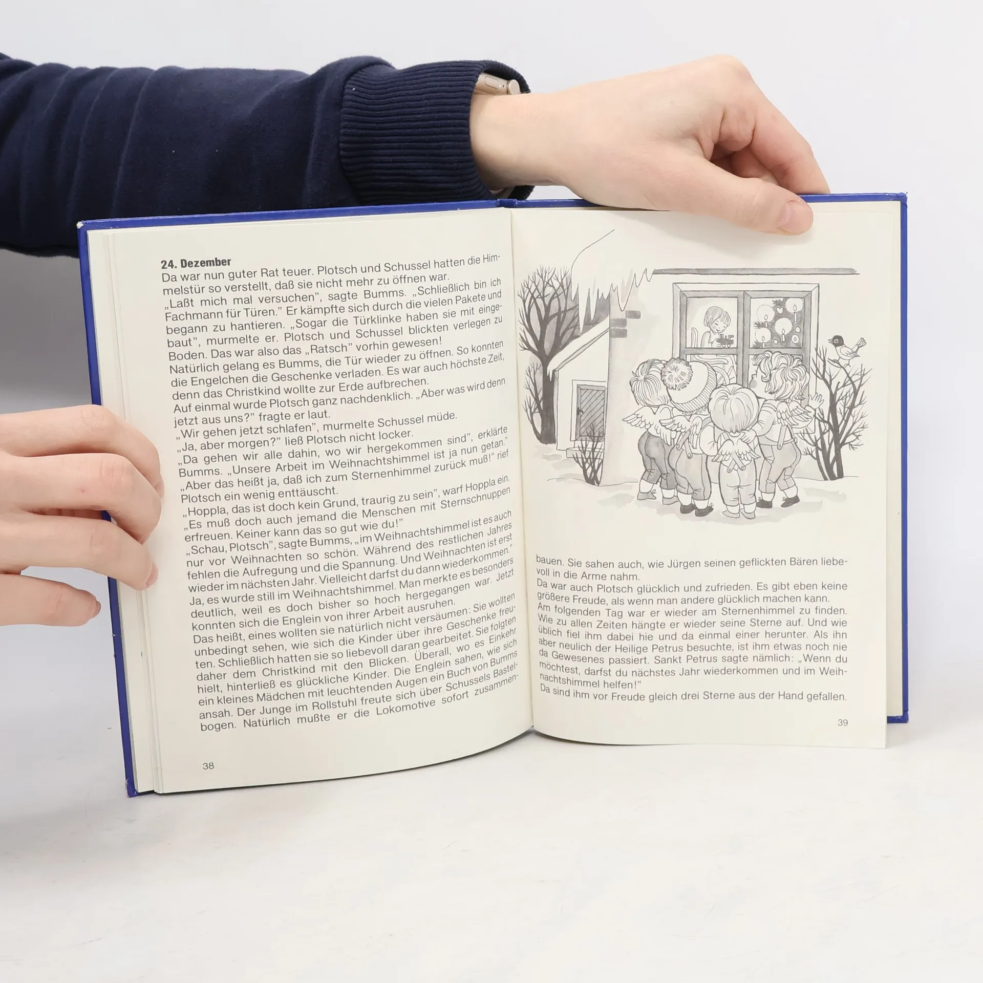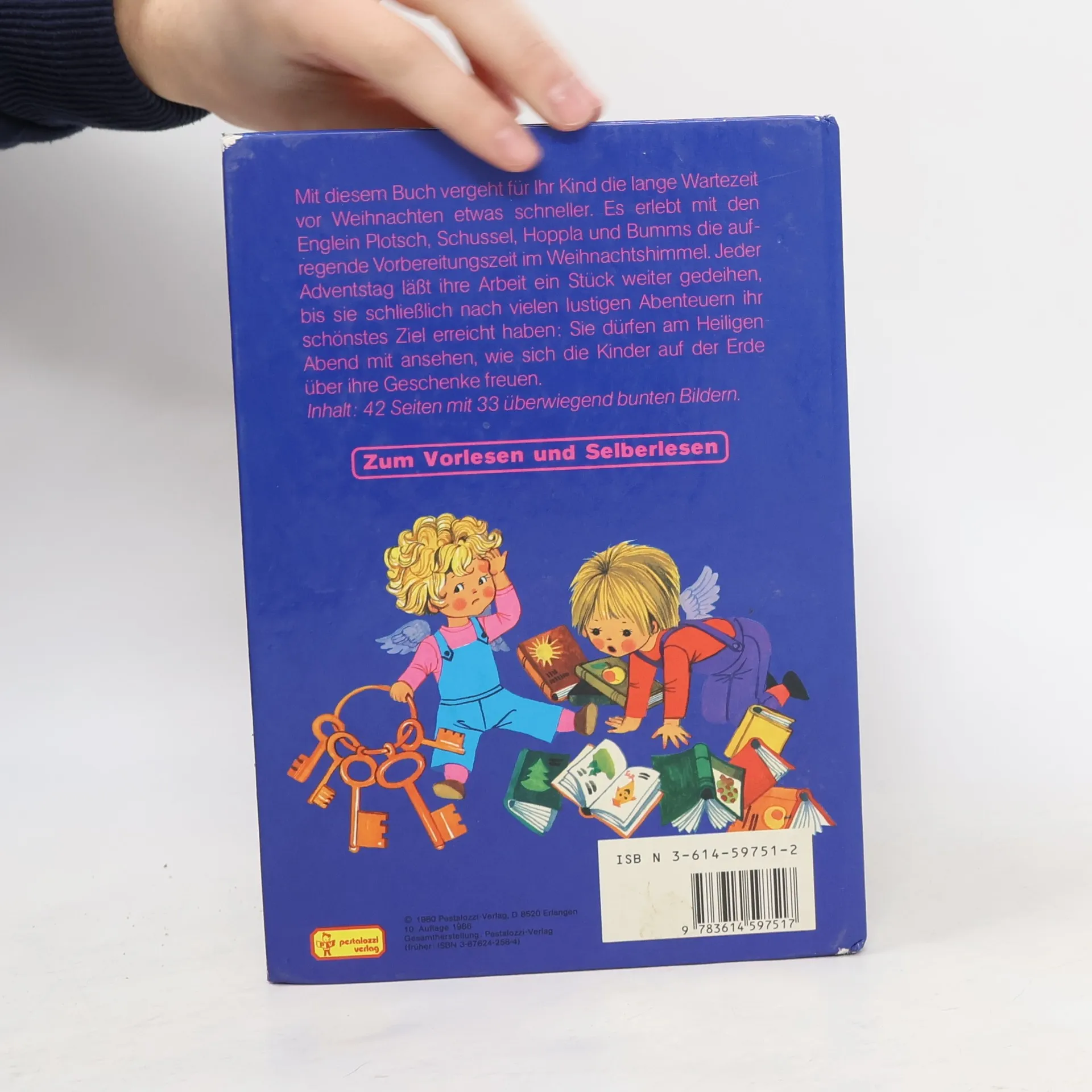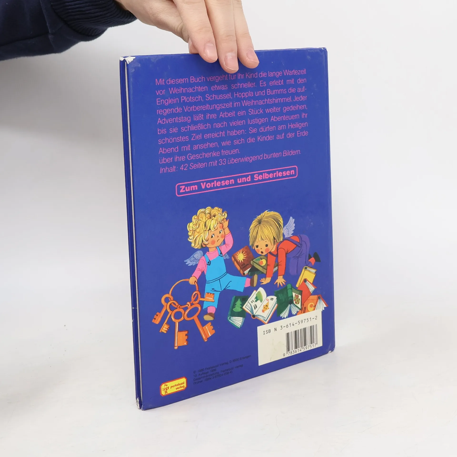 Mit diesem Buch vergeht für Ihr Kind die lange Wartezeit vor Weihnachten etwas schneller. Es erlebt mit den Englein Plotsch, Schussel, Hoppla und Bumms die aufregende Vorweihnachtszeit im Weihnachtshimmel. Jeder Adventstag läßt ihre Arbeit ein Stück weiter gedeihen, bis sie schließlich nach vielen lustigen Abenteuern ihr schönstes Ziel erreicht haben: Sie dürfen am Heiligen Abend mit ansehen, wie sich die Kinder auf der Erde über ihre Geschenke freuen.