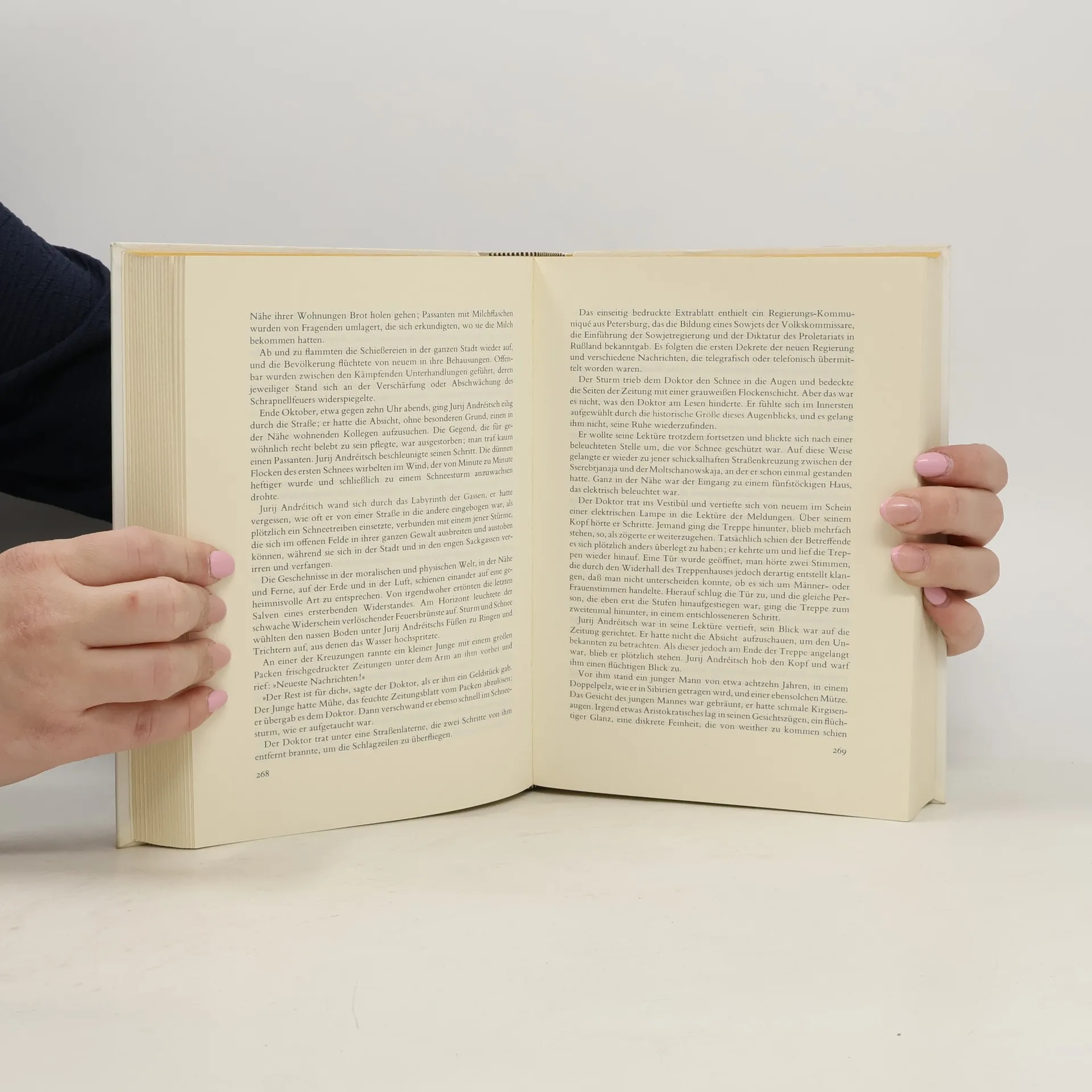 Der Krieg, die Oktoberrevolution mit all ihren Schrecken und Platitüden und eine tragische, schicksalhafte Liebe sind die weltberühmten Themen dieses Buches. 1957 erschien der Roman, an dem Pasternak ein halbes Leben gearbeitet hatte, in Italien; in der Sowjetunion durfte er nicht veröffentlicht werden. 1958 lehnte Boris Pasternak aus politischen Gründen den Nobelpreis für Literatur ab. Bis zu seinem Tod 1960 blieb er isoliert. Der Mediziner und Dichter Jurij Schiwago wollte losgelöst von der bolschewistischen Revolution und ihrer Ideologie sein eigenes Leben leben und muss am Ende erkennen, dass er gescheitert ist. Auch wenn er auf seinem Weg seine große Liebe gefunden hat. Denn dem Zauber Laras, die als sehr junges Mädchen vom Freund ihrer Mutter verführt wurde, ist er von Anfang an erlegen. Beide sind verheiratet: Sie mit einem orthodoxen Revolutionär, er mit Tonja, neben der er aufgewachsen ist. Das Nebeneinander von Tagebuchnotizen, Gedichten, Monologen, Ausschnitten aus dem Leben der einzelnen Figuren und philosophischen Reflexionen wird im Hörspiel weniger verwirrend als im Roman selbst vermittelt. Die unterschiedlichen Stimmen verdeutlichen ganz natürlich die verschiedenen Perspektiven.