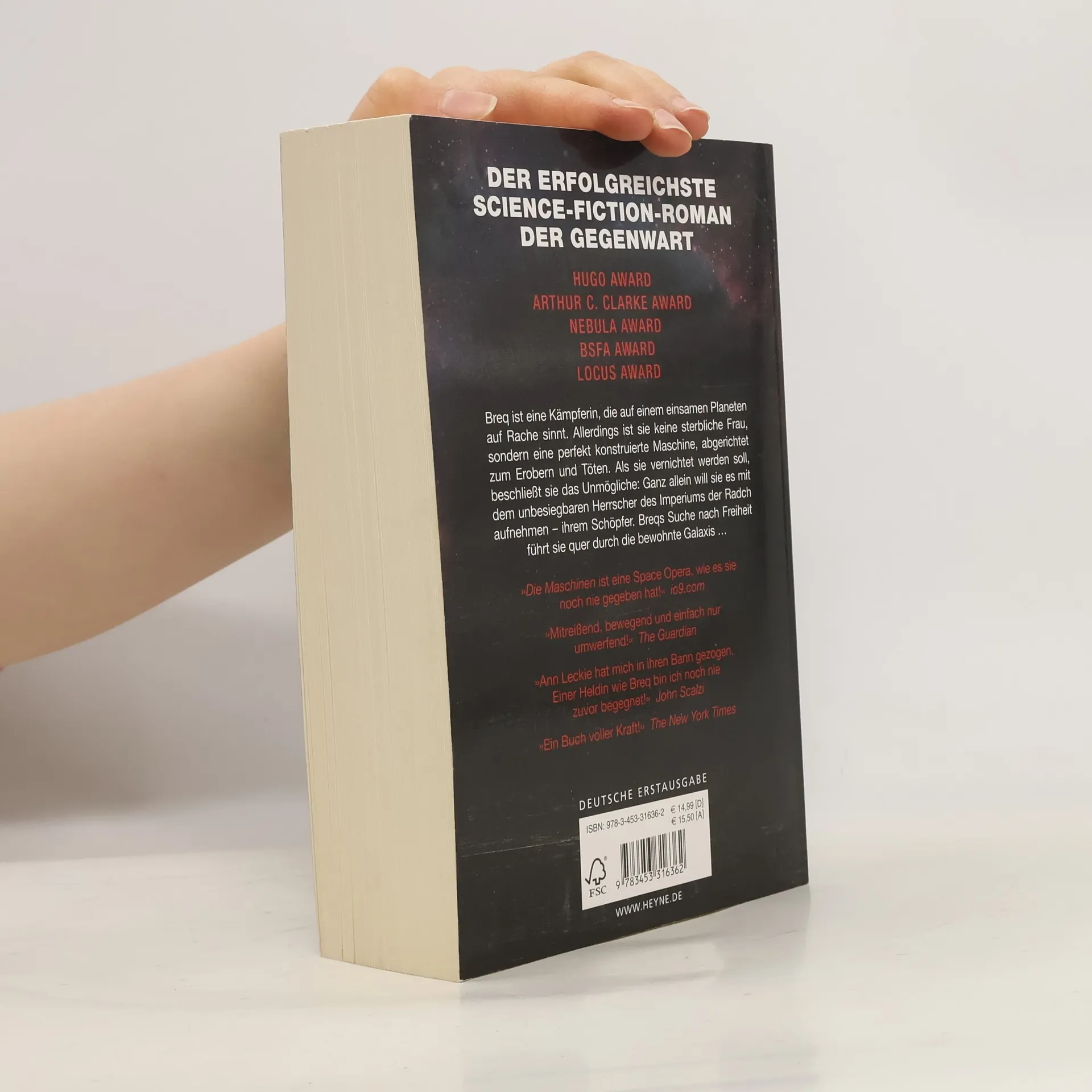 Was wird aus den Menschen, wenn die Maschinen frei sein wollen? Breq ist eine Kämpferin, die auf einem einsamen Planeten auf Rache sinnt. Hinter ihrer verletzlichen, menschlichen Fassade verbirgt sich mehr, als es zunächst den Anschein hat: Sie wurde von den Radch geschaffen, die nach und nach das gesamte Universum unterworfen haben. Breq ist nur dem Äußeren nach eine Frau, vor allem aber ist sie ist eine perfekt konstruierte Maschine, abgerichtet zum Erobern und Töten. Nun aber beschließt sie das Unmögliche: Ganz allein will sie es mit Anaander Mianaai aufnehmen, dem unbesiegbaren Herrscher der Radch. Denn Breq will endlich frei sein.