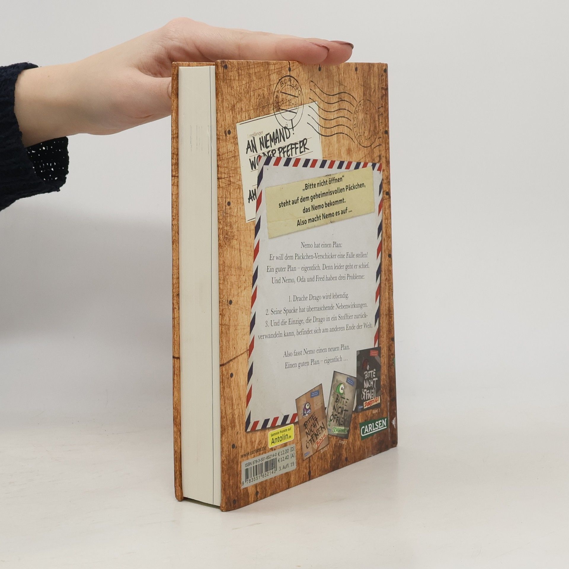 Was ist rot, schuppig und die neuste Attraktion in Boring? Nemos neue Monsterpost! Nemo hat einen Plan, um dem Päckchen-Verschicker eine Falle zu stellen, doch das geht schief, und der Spielzeugdrache Drago wird lebendig. Zu allem Überfluss hat Dragos Spucke interessante Nebenwirkungen. Das größte Problem: Die Einzige, die Drago zurückverwandeln kann, ist am anderen Ende der Welt. Nemo braucht dringend einen Plan B! Nemo und seine Freunde Oda und Fred erhalten ständig seltsame Pakete, die sie eigentlich nicht öffnen dürfen, aber sie tun es trotzdem – mit katastrophalen Folgen! Aus jedem Paket springt ein Wesen, das nach Hause will: quicklebendig, riesengroß und selten hilfreich. Die Buchreihe „Bitte nicht öffnen“ bietet geheimnisvolle Pakete, urkomische Figuren und spannende Abenteuer. Ideal für Fans von mysteriösen Detektivgeschichten und lustiger Fantasy. Yeti, Drache oder Vampir – hinter jedem Band versteckt sich ein anderes Monster. Mit großer Schrift und vielen Bildern ist sie perfekt für Leseanfänger*innen und Zweitklässler*innen ab 8 Jahren. Ein verlorenes Wesen, das nach Hause will, drei mutige Freunde und viele Überraschungen – für abenteuerlustige Mädchen und Jungen zum Vor- oder Selberlesen.
