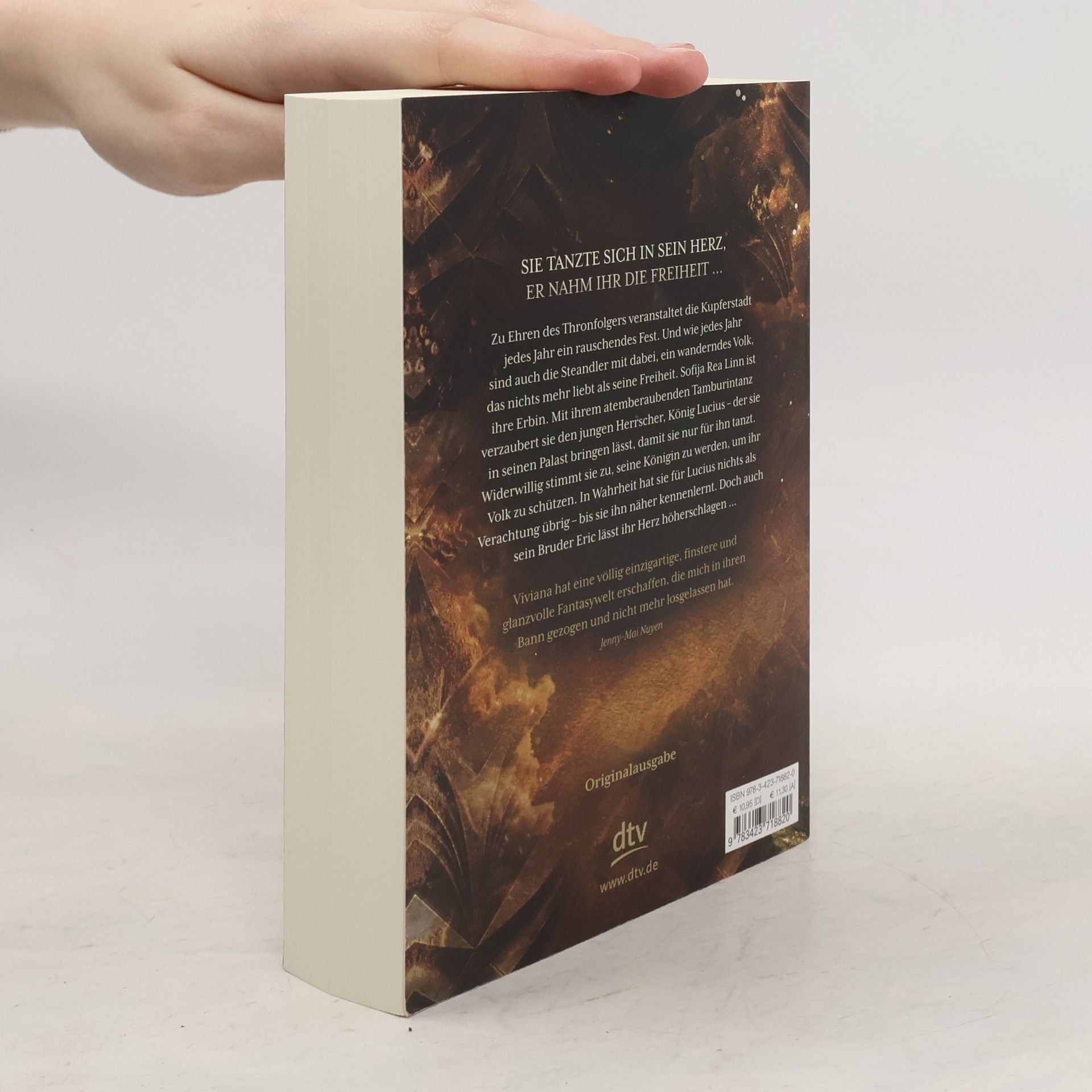 Sie tanzte sich in sein Herz, er nahm ihr die Freiheit … Zu Ehren des Thronfolgers veranstaltet die Kupferstadt jedes Jahr ein rauschendes Fest. Und wie jedes Jahr sind auch die Steandler mit dabei, ein wanderndes Volk, das nichts mehr liebt als seine Freiheit. Sofija Rea Linn ist ihre Erbin. Mit ihrem atemberaubenden Tambourintanz verzaubert sie den jungen Herrscher, König Lucius – der sie in seinen Palast bringen lässt, damit sie nur für ihn tanzt. Widerwillig stimmt sie zu, seine Königin zu werden, um ihr Volk zu schützen. In Wahrheit hat sie für Lucius nichts als Verachtung übrig – bis sie ihn näher kennenlernt. Doch auch sein Bruder Eric lässt ihr Herz höherschlagen …