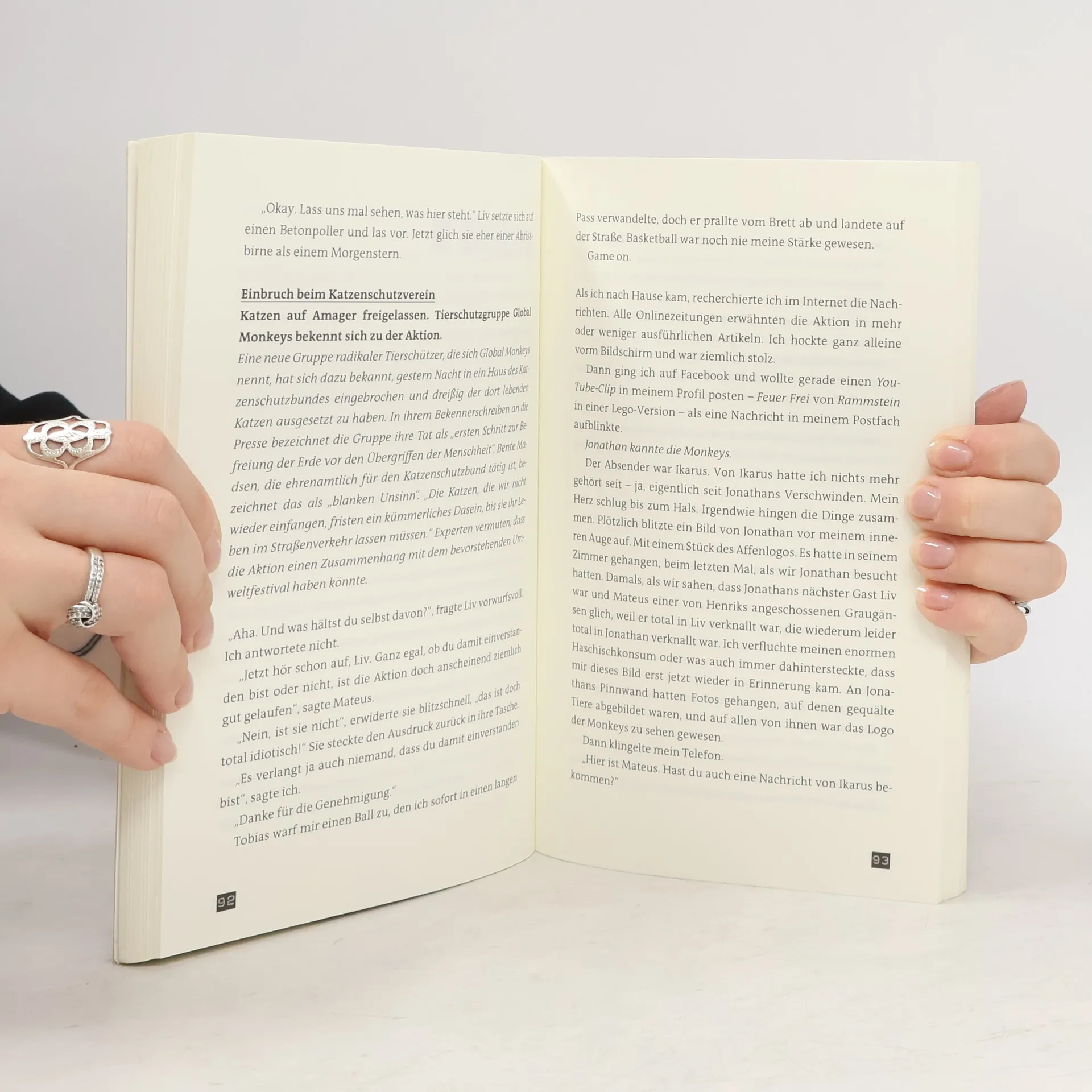 Jonathan wird zusammengeschlagen. Lebt er noch, oder ist er tot? Und wer ist Ikarus, der sich mit kryptischen Nachrichten auf Facebook bei Freunden von Jonathan meldet und behauptet, er wisse etwas von ihm. Eine radikale Tierschutzorganisation scheint ihn ebenfalls gekannt zu haben. Ist ihnen Jonathan auf deren extreme Machenschaften zu nah gekommen?
