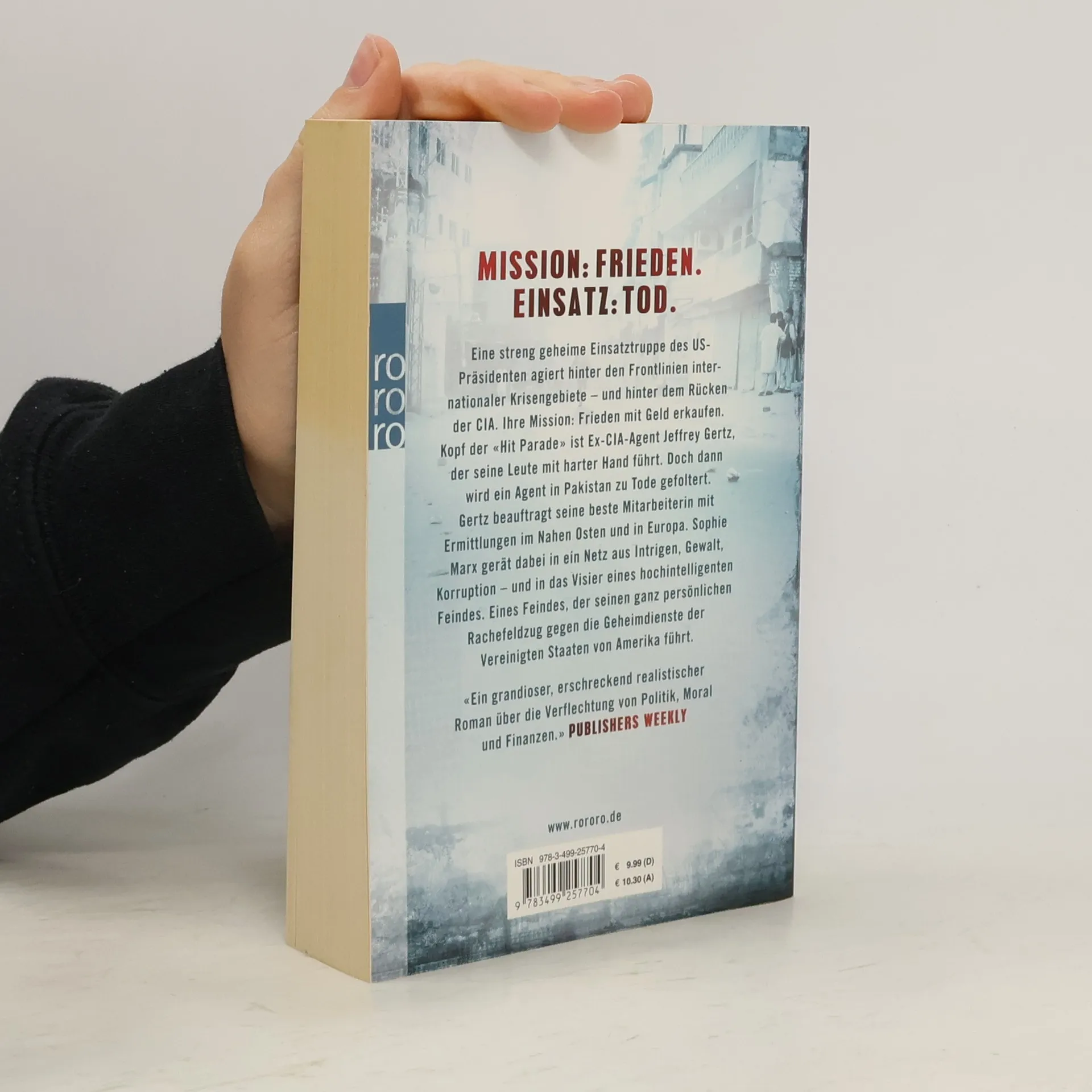 Mission: Frieden. Einsatz: Tod. Eine streng geheime Einsatztruppe des US-Präsidenten agiert hinter den Frontlinien internationaler Krisengebiete – und hinter dem Rücken der CIA. Ihre Mission: Frieden mit Geld erkaufen. Kopf der «Hit Parade» ist Ex-CIA-Agent Jeffrey Gertz, der seine Leute mit harter Hand führt. Doch dann wird ein Agent in Pakistan zu Tode gefoltert. Gertz beauftragt seine beste Mitarbeiterin mit Ermittlungen im Nahen Osten und in Europa. Sophie Marx gerät dabei in ein Netz aus Intrigen, Gewalt, Korruption - und in das Visier eines hochintelligenten Feindes. Eines Feindes, der seinen ganz persönlichen Rachefeldzug gegen die Geheimdienste der Vereinigten Staaten von Amerika führt.