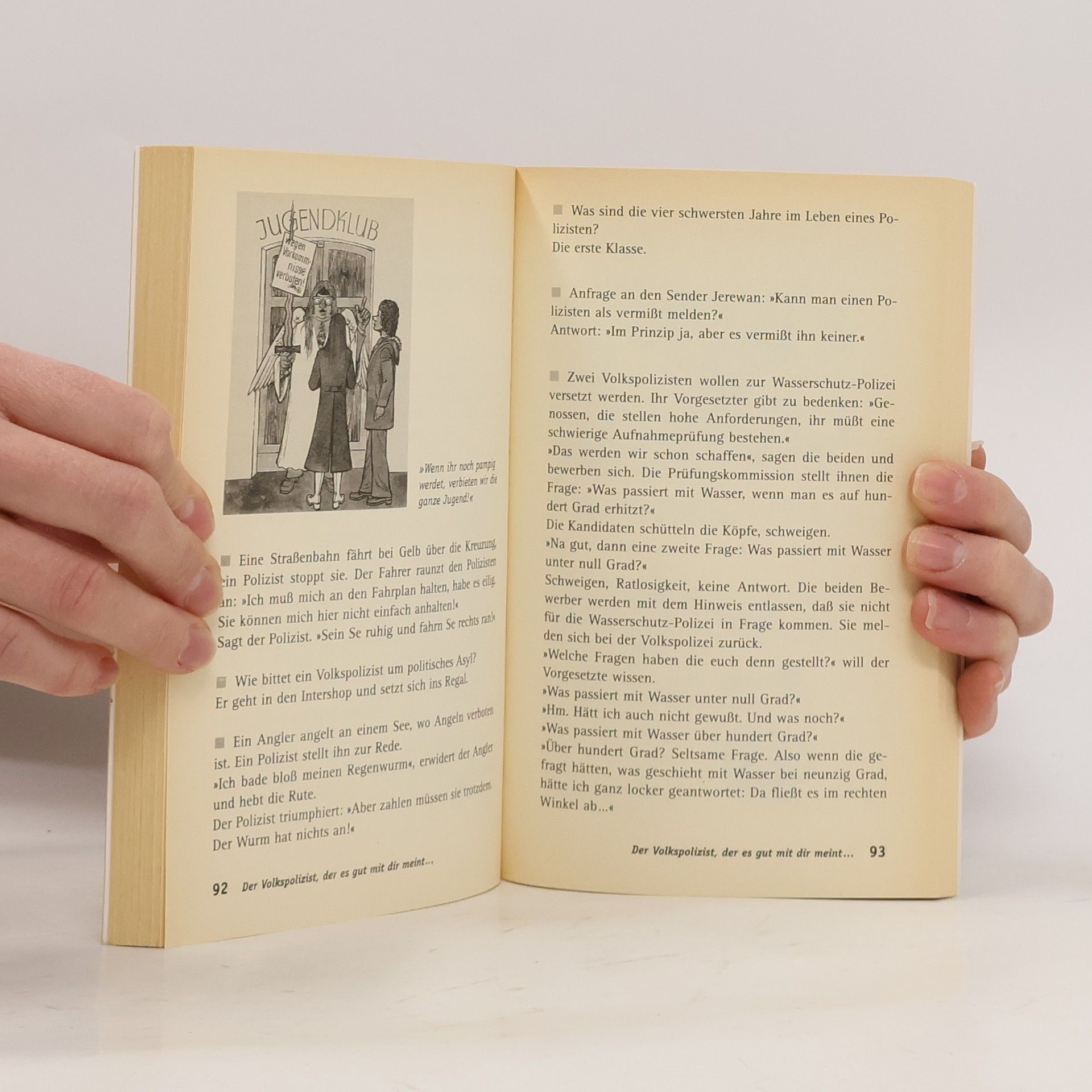 Authentische Witze aus der DDR, auf die Spitze getrieben durch Karikaturen von Heinz Behling, Manfred Bofinger, Henry Büttner, Barbara Henniger, Heinz Jankofsky, Harald Kretzschmar, Harri Parschau, Louis Rauwolf, Horst Schade und vielen anderen.