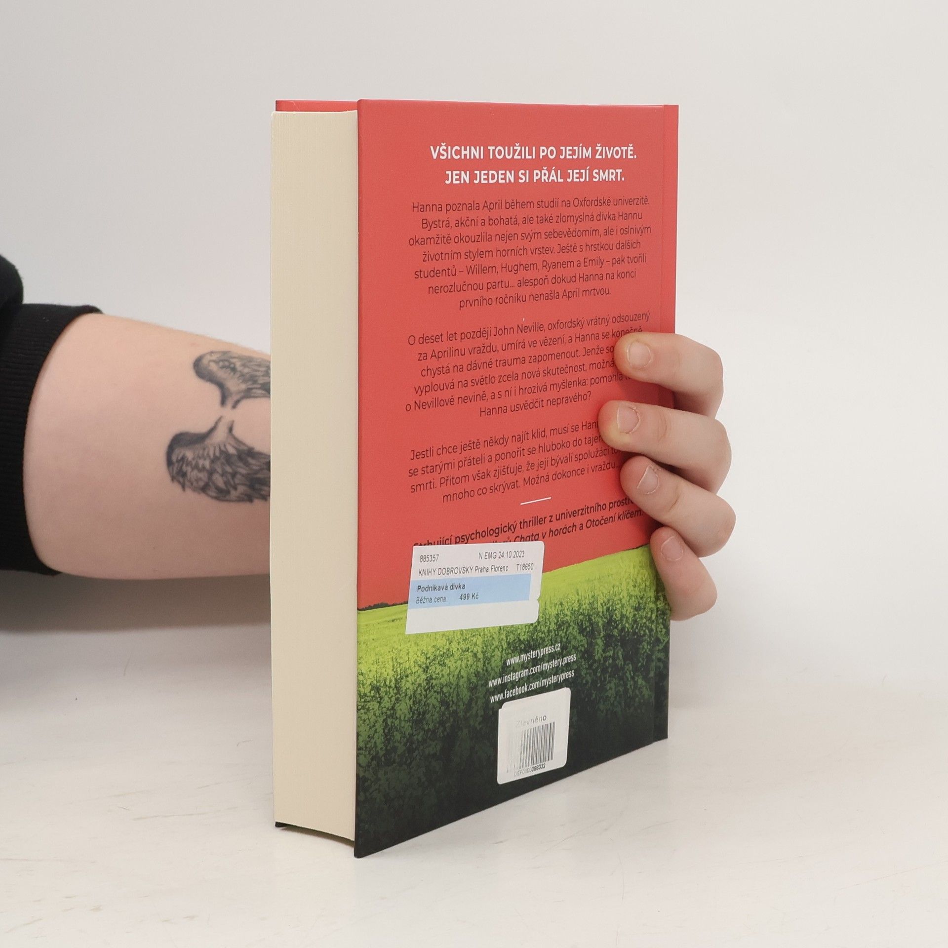 VŠICHNI TOUŽILI PO JEJÍM ŽIVOTĚ. JEN JEDEN SI PŘÁL JEJÍ SMRT. Hanna poznala April během studií na Oxfordské univerzitě. Bystrá, akční a bohatá, ale také zlomyslná dívka Hannu okamžitě okouzlila nejen svým sebevědomím, ale i oslnivým životním stylem horních vrstev. Ještě s hrstkou dalších studentů – Willem, Hughem, Ryanem a Emily – pak tvořili nerozlučnou partu… alespoň dokud Hanna na konci prvního ročníku nenašla April mrtvou. O deset let později John Neville, oxfordský vrátný odsouzený za Aprilinu vraždu, umírá ve vězení, a Hanna se konečně chystá na dávné trauma zapomenout. Jenže současně vyplouvá na světlo zcela nová skutečnost, možná svědčící o Nevillově nevině, a s ní i hrozivá myšlenka: pomohla tenkrát Hanna usvědčit nepravého? Jestli chce ještě někdy najít klid, musí se Hanna znovu sejít se starými přáteli a ponořit se hluboko do tajemství Apriliny smrti. Přitom však zjišťuje, že její bývalí spolužáci toho mají mnoho co skrývat. Možná dokonce i vraždu... ___ Strhující psychologický thriller z univerzitního prostředí od autorky bestsellerů Chata v horách a Otočení klíčem.