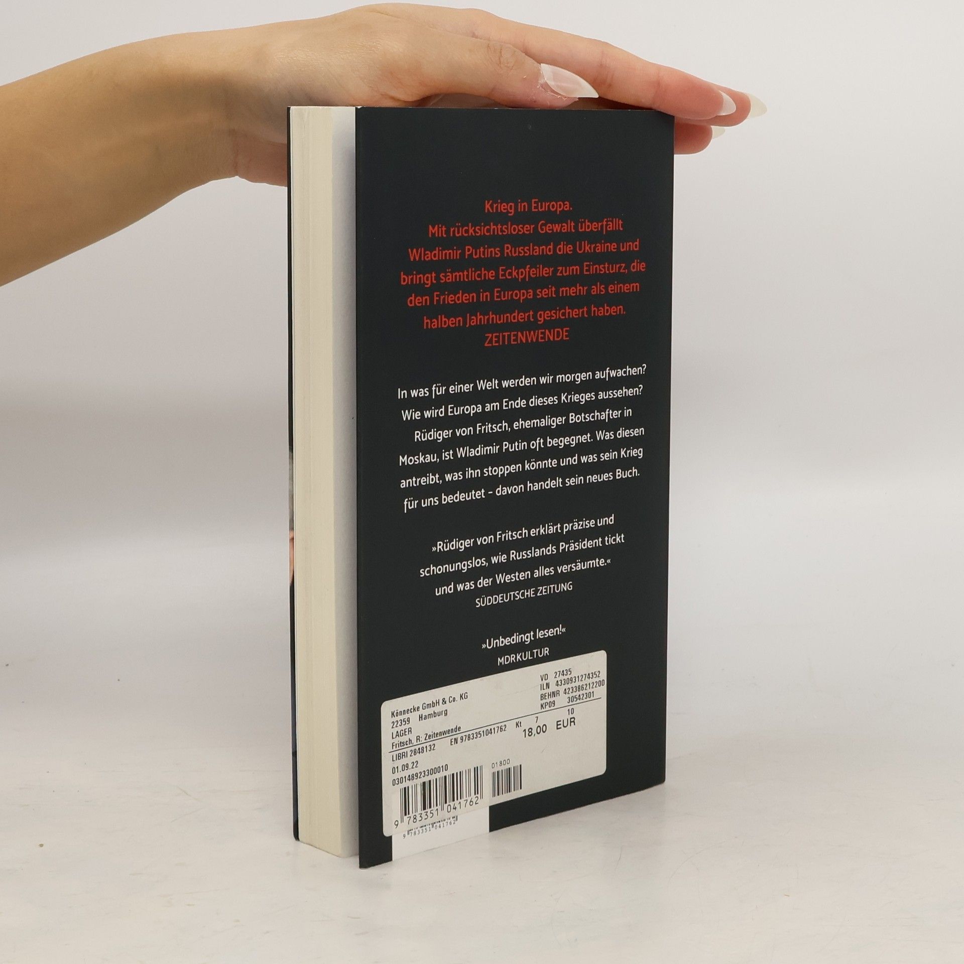 Krieg in Europa. Mit rücksichtsloser Gewalt überfällt Wladimir Putins Russland die Ukraine und bringt sämtliche Eckpfeiler zum Einsturz, die den Frieden in Europa seit mehr als einem halben Jahrhundert gesichert haben. Zeitenwende. In was für einer Welt werden wir morgen aufwachen? Wie wird Europa am Ende dieses Krieges aussehen? Rüdiger von Fritsch, ehemaliger Botschafter in Moskau, ist Wladimir Putin oft begegnet. Was diesen antreibt, was ihn stoppen könnte und was sein Krieg für uns bedeutet – davon handelt sein neues Buch. „Eine hellsichtige Analyse.“ Süddeutsche Zeitung über „Russlands Weg“