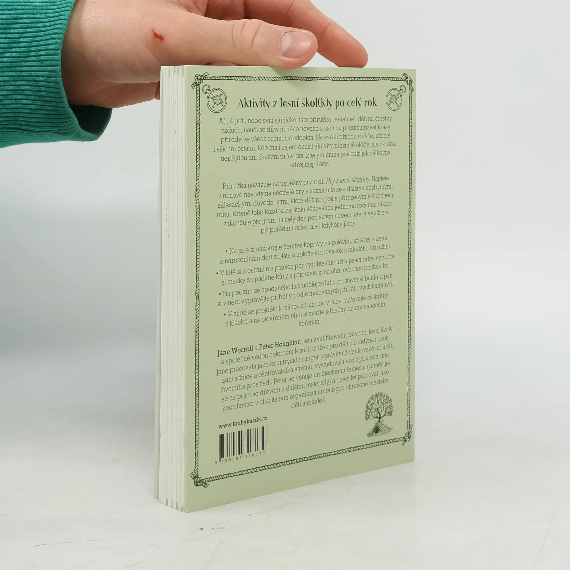 Venkovní hry a dovednostní aktivity na každé roční období Ať už prší, nebo svítí sluníčko, tato příručka „vytáhne“ děti na čerstvý vzduch, naučí se díky ní něco nového a začnou prozkoumávat krásy přírody ve všech ročních obdobích. Na své si přijdou rodiče, učitelé i všichni ostatní, kdo mají zájem okusit aktivity z lesní škol(k)y, ale zkrátka nepřijdou ani zkušení průvodci, kterým kniha poslouží jako šikovný zdroj inspirace.