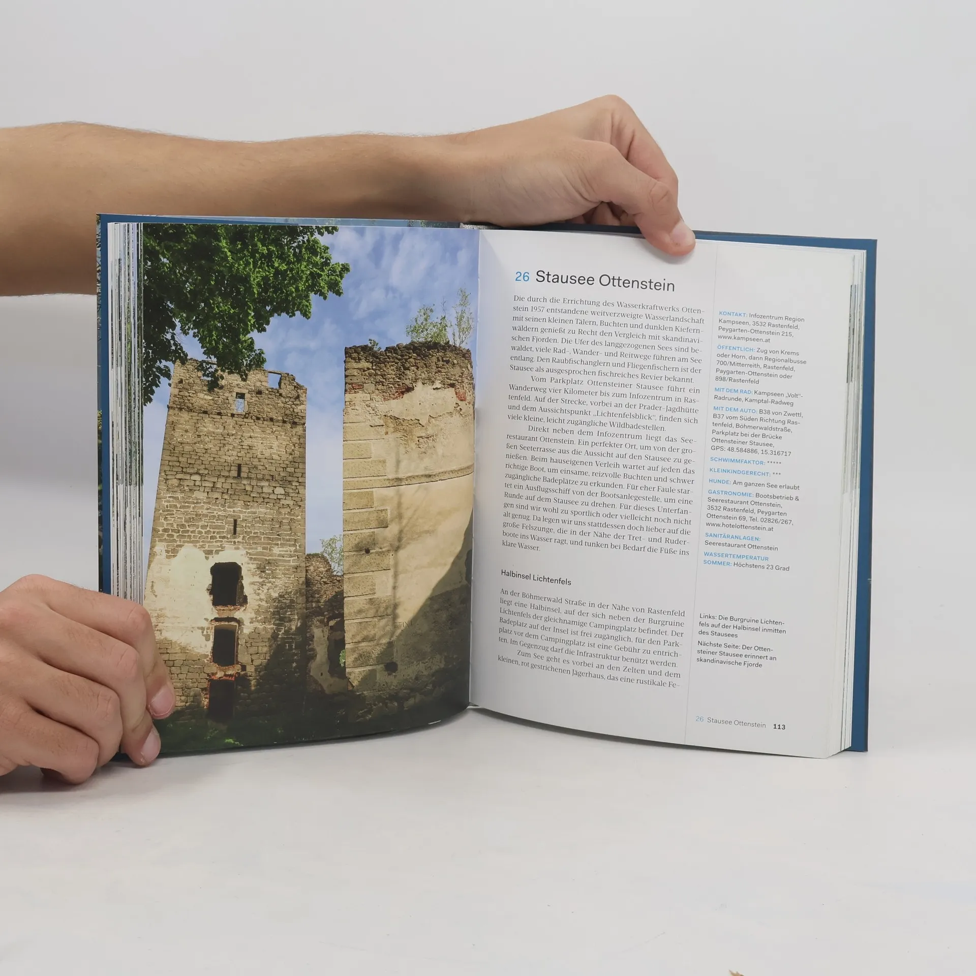 Der Guide zeigt, dass man auch in der Großstadt inmitten von Natur schwimmen kann. Wo an der Alten und Neuen Donau oder in der Lobau die schönsten Badeplätze liegen. Er führt aufs Land zu Flussbädern mit ihren pittoresken Bootshäusern und zu sagenumwobenen Seen, in denen sich majestätisch die Berge spiegeln. Eine Entdeckungsreise zu idyllischen Teichen vor Schlössern und Kirchen, den Wachauer Sandstrände mit Blick auf die berühmten Weinrieden, entlang türkisblauer Flüsse durch romantische Schluchten und sonnigen Steinen in Naturschutzgebieten, zu prasselnden Wasserfällen und smaragdgrüne Gumpen. 61 Wildbadeplätze in Ostösterreich mit über 100 wunderschönen Badestellen, die auch mit öffentlichen Verkehrsmitteln oder dem Rad erreichbar sind. Dazu werden Ausflugs- und Einkehrtipps in der Nähe aufgelistet. Fast alle Badestellen sind kostenlos zugänglich, werden regelmäßig auf ihre Wasserqualität untersucht und erhalten immer hervorragende Bewertungen, viele haben sogar Trinkwasserqualität. Übersichtspläne erleichtern die Orientierung und GPS-Daten sorgen für eine stressfreie Ankunft.
