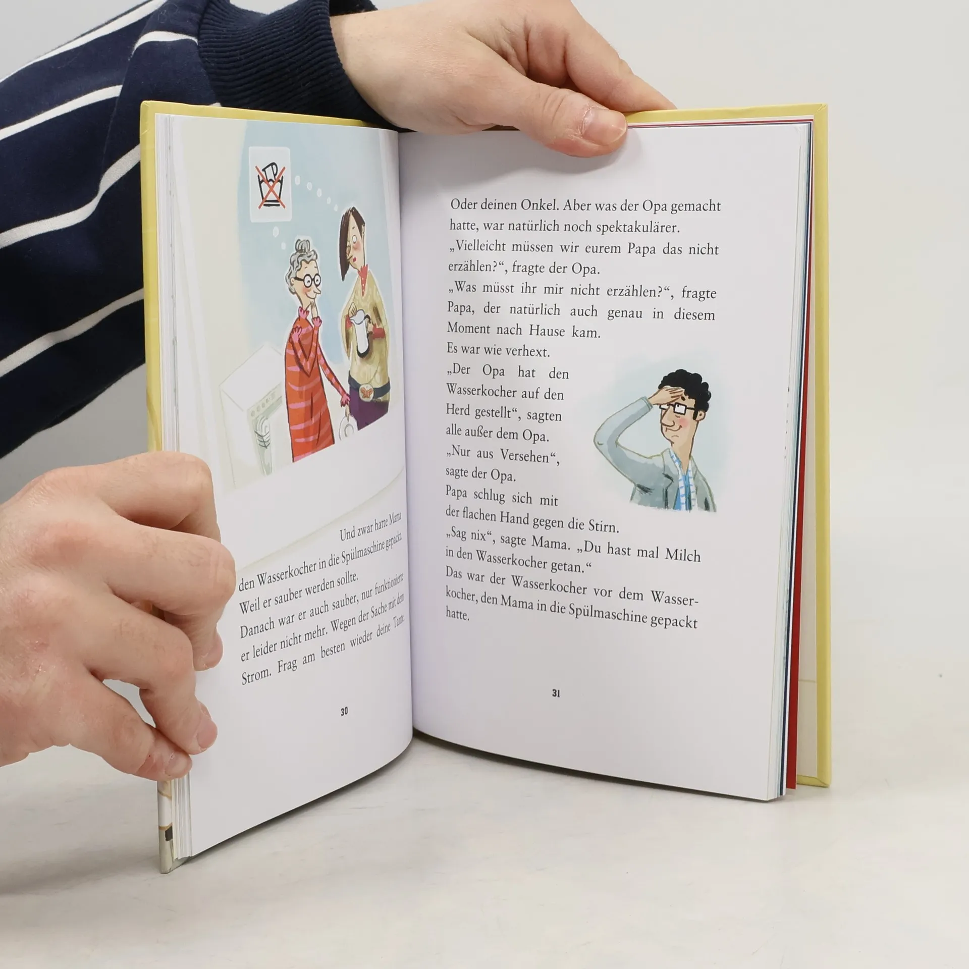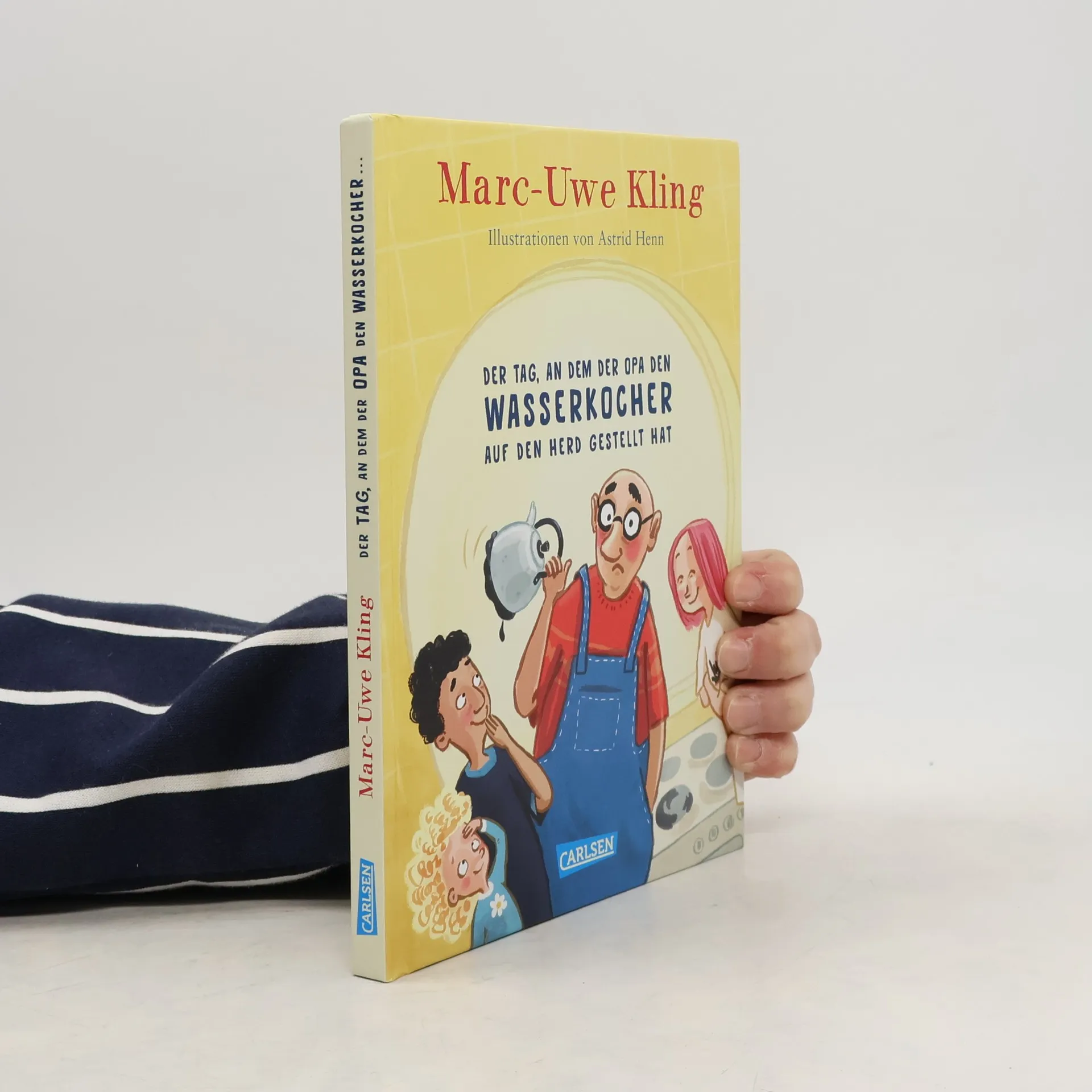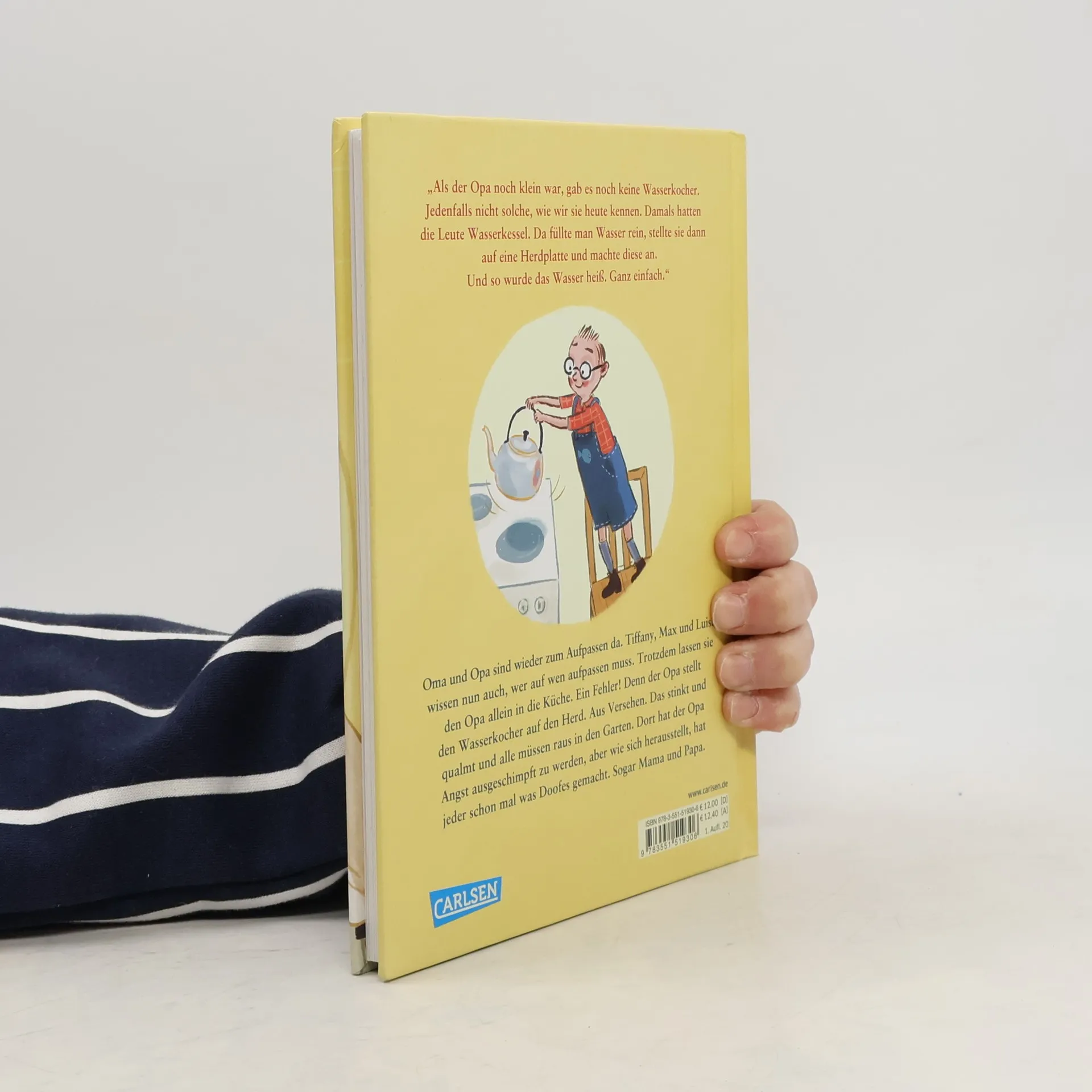 In den Sommerferien kommen Oma und Opa wieder zum Aufpassen vorbei. Tiffany, Max und Luisa wissen nun auch, wer auf wen aufpassen soll. Und trotzdem lassen sie den Opa allein in die Küche. Tja, und der Opa stellt den supertollen neuen Retro-Wasserkocher auf den Herd und dann macht er die Platte an. Zwar nur aus Versehen, ist aber trotzdem keine gute Idee: Der Wasserkocher fängt an zu schmelzen, sodass es im ganzen Haus fürchterlich stinkt und alle über Nacht im Garten bleiben müssen. Wider Erwarten wird das sogar richtig lustig - mit Tischtennisturnier, Wasserschlacht, Lagerfeuer und Gruselgeschichten von Wasserkochern. Das neueste Kinderbuch von Marc-Uwe Kling nach den Bestellern \"Der Tag, an dem die Oma das Internet kaputt gemacht hat\" und \"Das NEINhorn\". Mit unglaublich witzigen Illustrationen von Astrid Henn.
