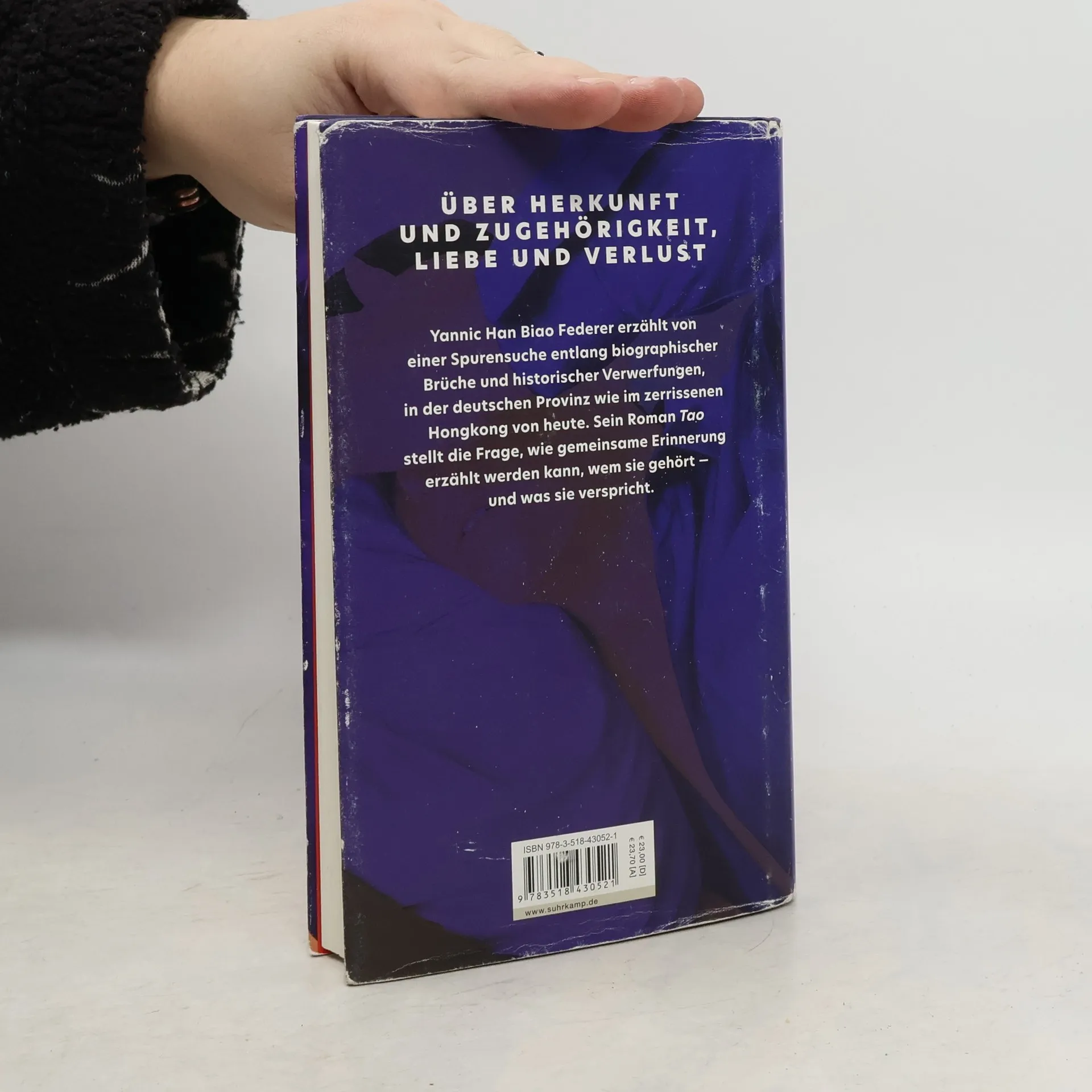 Über Herkunft und Zugehörigkeit, Liebe und Verlust Dass Tobi eigentlich Tao heißt, wissen die wenigsten. Nur Miriam nennt ihn, wenn sie zu zweit sind, bei seinem chinesischen Namen. Als sie ihn verlässt, reist Tao mit dem Auto quer durch Europa, um der Trauer über die Trennung zu entkommen. Doch die Erinnerung an die gemeinsamen Jahre verfolgt ihn, und auch der Tod des Vaters lässt ihn nicht los: Vor Jahren verschwand der in Hongkong – auf der Suche nach dem Geburtsort des eigenen Vaters. Nun ist es Tao, der sich auf die Spuren seiner Vorfahren begibt und zu schreiben beginnt, um die eigene Geschichte zu ordnen und die seiner Familie, die von China über Indonesien bis nach Deutschland reicht. Yannic Han Biao Federer erzählt von einer Spurensuche entlang biographischer Brüche und historischer Verwerfungen, in der deutschen Provinz wie im zerrissenen Hongkong von heute. Sein Roman Tao stellt die Frage, wie gemeinsame Erinnerung erzählt werden kann, wem sie gehört – und was sie verspricht.