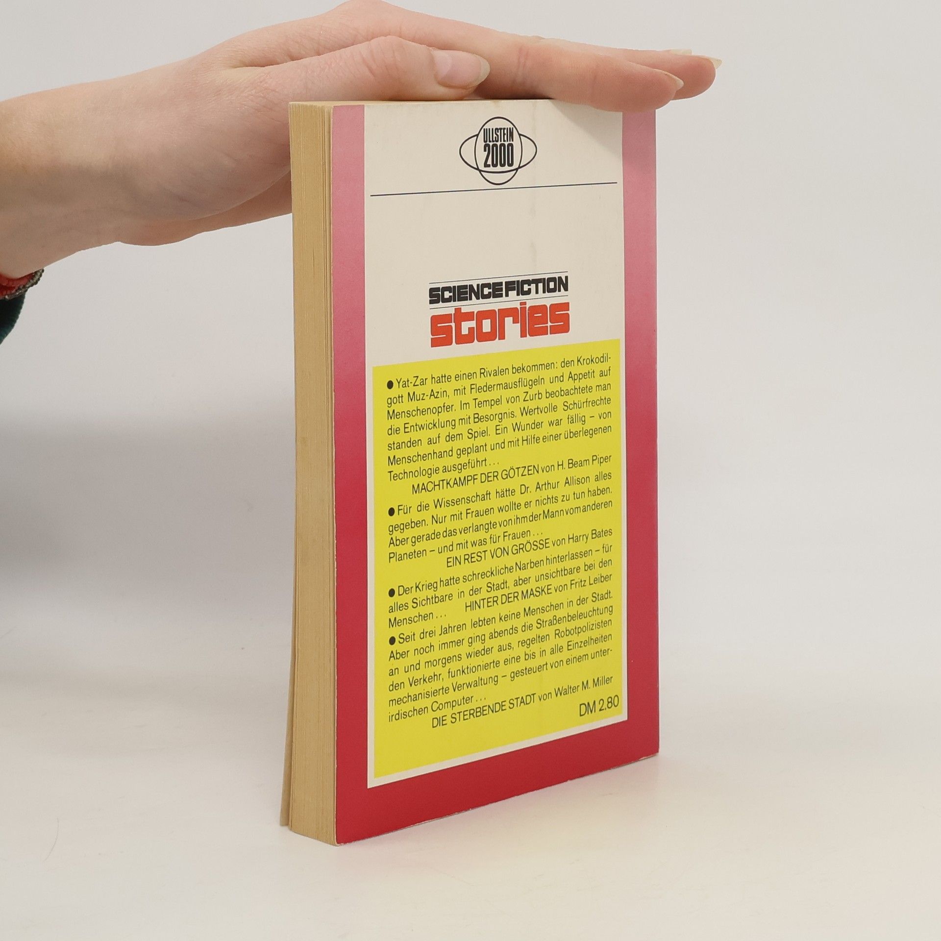Enthält folgende Stories: H. Beam Piper: Machtkampf der Götzen Harry Bates: Ein Rest von Größe Fritz Leiber: Hinter der Maske Walter M. Miller, Jr.: Die sterbende Stadt