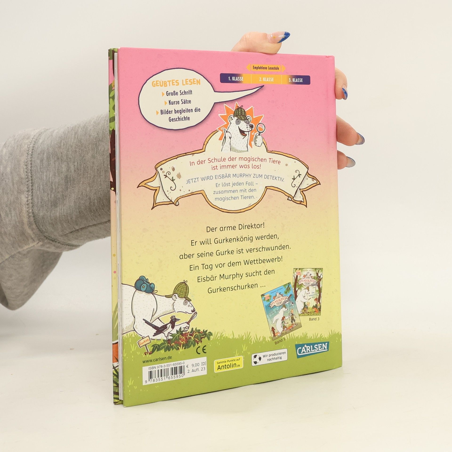***Die Schule der magischen Tiere – jetzt auch zum Lesenlernen!*** ***Ideales Geschenk zum Schulanfang*** „Dein Spiegel“-Bestsellerreihe - ausgezeichnet mit dem SPELL (Siegener Preis für Erstleseliteratur) und dem LEIPZIGER LESEKOMPASS 2021 In der Schule der magischen Tiere ist immer was los! Jetzt wird Eisbär Murphy zum Detektiv. Er löst jeden Fall – zusammen mit den magischen Tieren! BAND 5: Der arme Direktor! Seine Gurke wurde geklaut – ausgerechnet jetzt, wo der neue Gurkenkönig gewählt wird. Wer steckt dahinter? Vielleicht die Sportlehrerin, die nur Gemüse knabbert? Eisbär-Detektiv Murphy und die magischen Tiere suchen den Gurkenschurken ... Leichte Kinderkrimis mit den beliebten magischen Tieren: ab 6 Jahren Einfach Lesen lernen: Kleine Texteinheiten in Kombination mit vielen bunten Bildern Kurze Sätze und Wörter mit Leserätsel „Kurze Sätze, viele Absätze und die fröhlichen Illustrationen von Nina Dulleck sorgen dafür, dass das Lesen Freude bereitet.“ Eselsohr Die digitale Ausgabe von »Der Gurkenschurke« ist ausschließlich als Fixed Format verfügbar und eignet sich deshalb nur für Tablets und Smartphone-Apps.