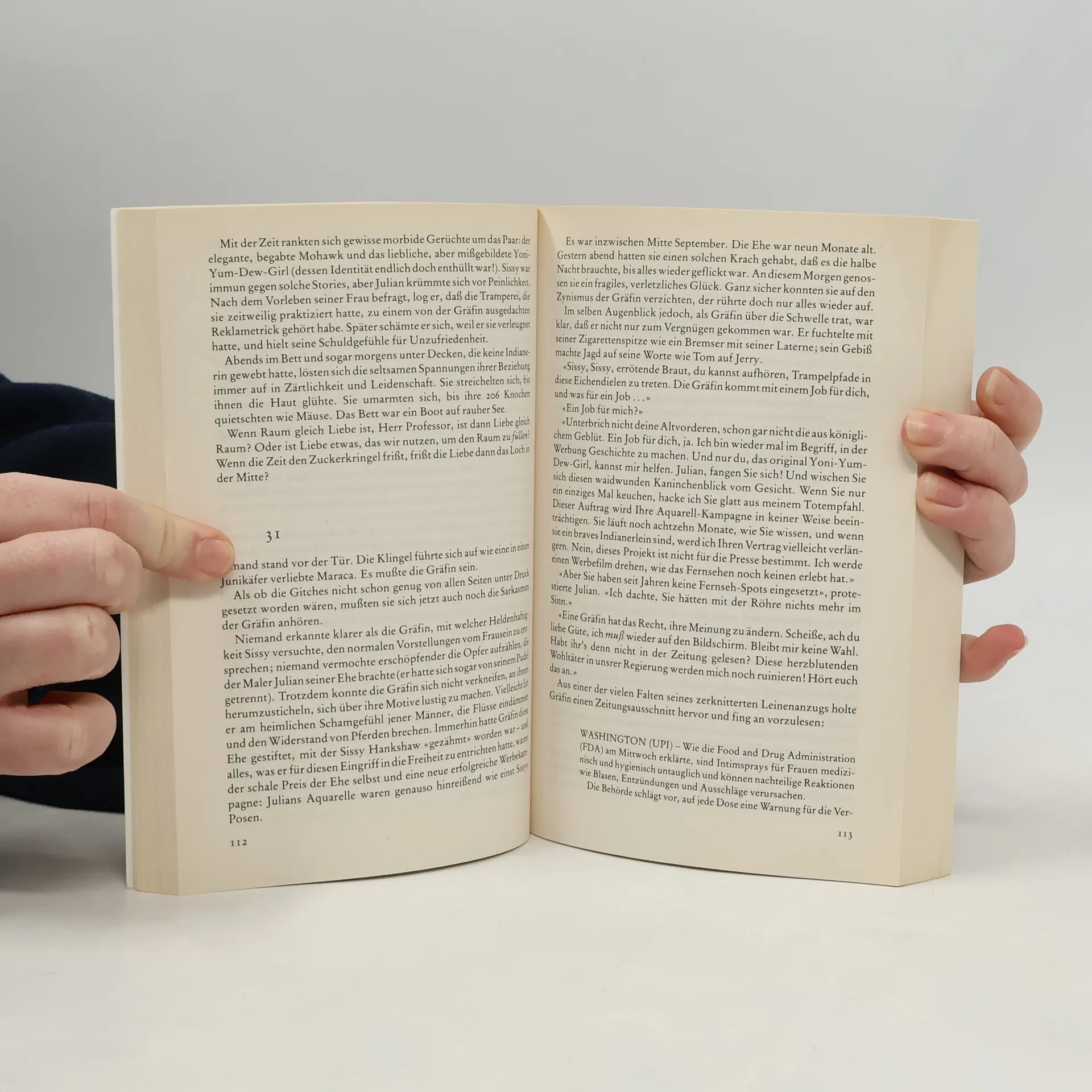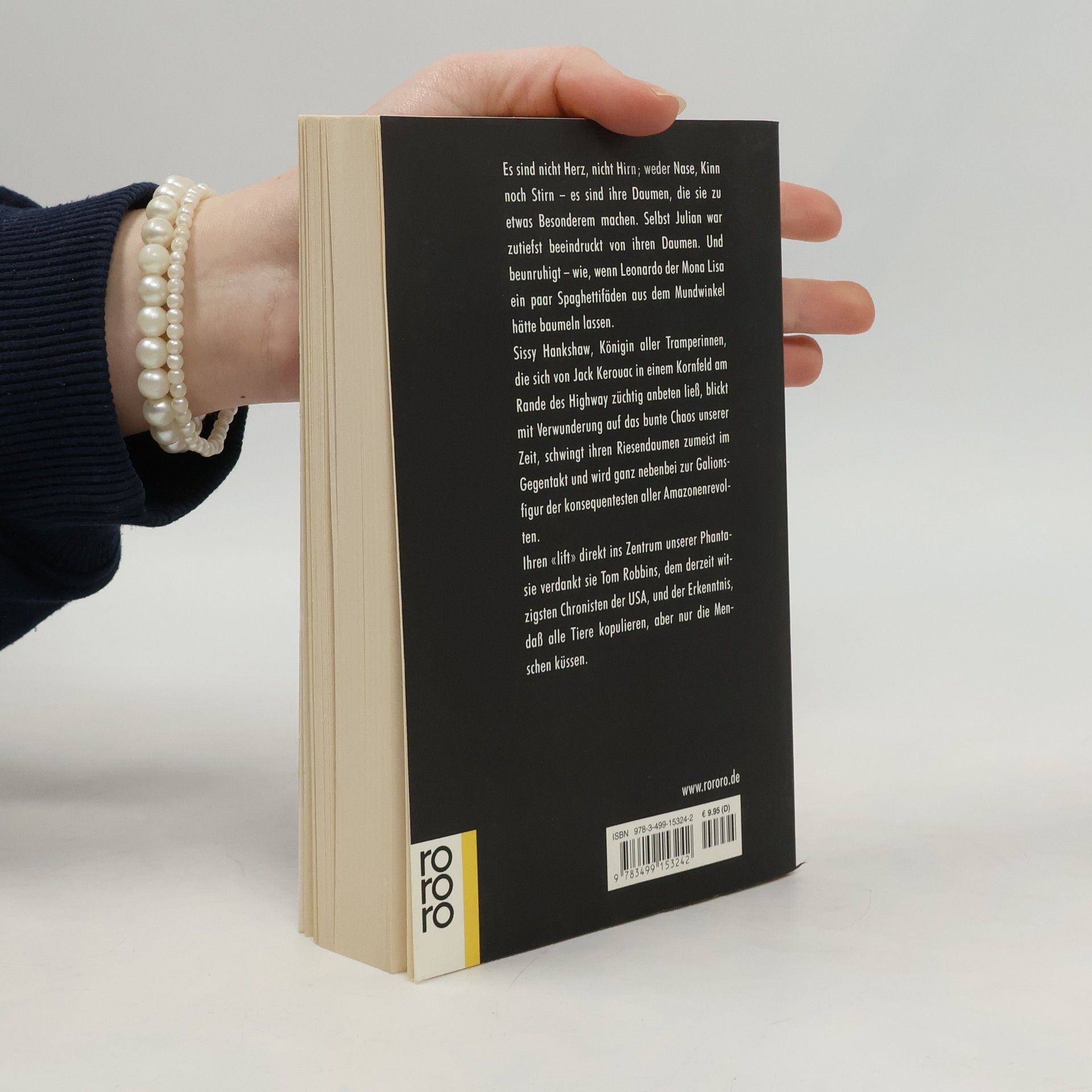 Es sind nicht Herz, nicht Hirn; weder Nase, Kinn noch Stirn - es sind ihre Daumen, die sie zu etwas Besonderen machen. Selbst Julian war zutiefst beeindruckt von ihren Daumen. Und beunruhigt - wie, wenn Leonardo der Mona Lisa ein paar Spaghettifäden aus dem Mundwinkel hätte baumeln len. Sissy Hankshaw, Königin aller Tramperinnen, die sich von Jack Kerouac in einem Kornfeld am Rande des Highway züchtig anbeten ließ, blickt mit Verwunderung auf das bunte Chaos unserer Zeit, schwingt ihren Riesendaumen zumeist im Gegentakt und wird ganz nebenbei zur Galionsfigur der konsequentesten aller Amazonenrevolten.
