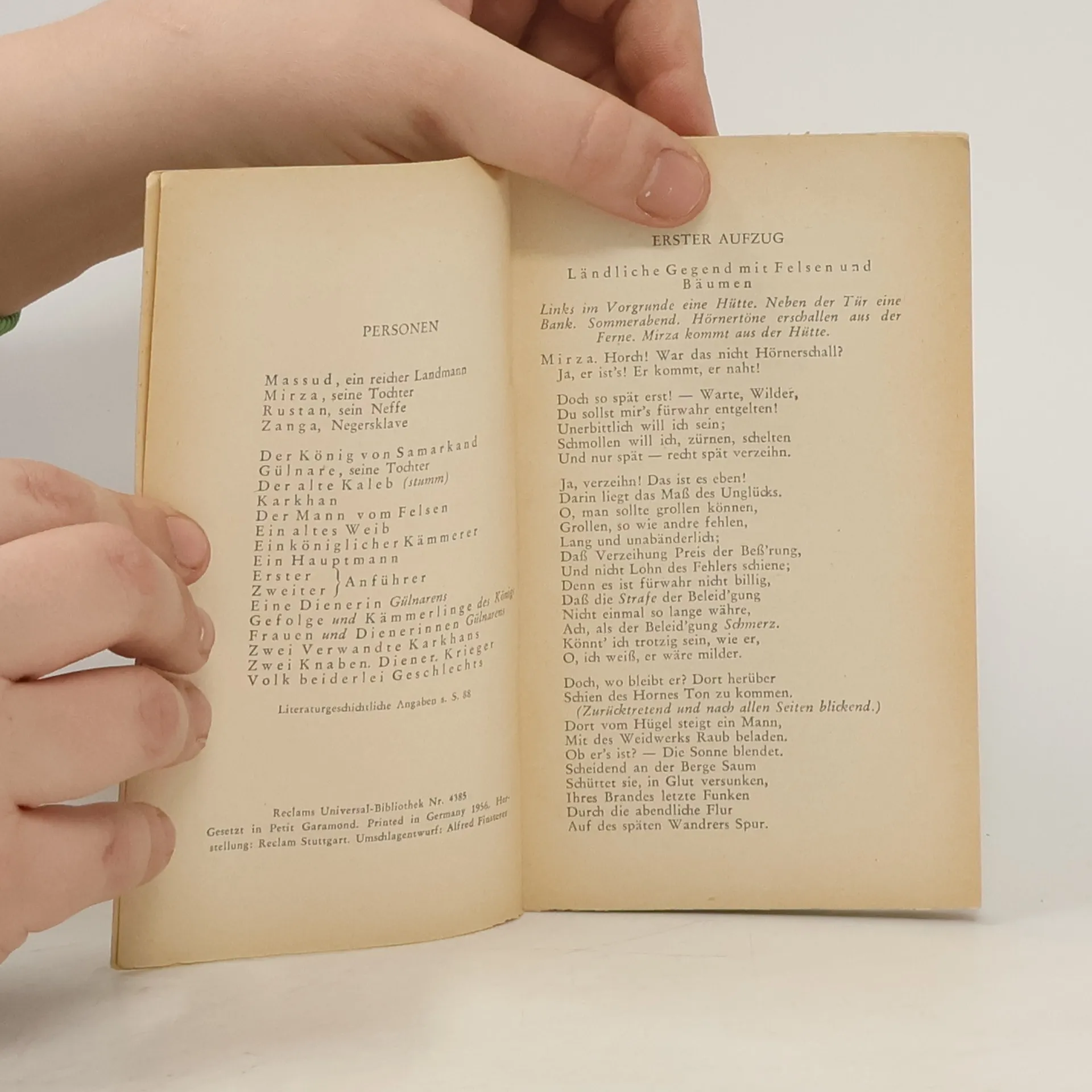 Franz Grillparzer: Der Traum ein Leben. Dramatisches Märchen in vier Aufzügen Edition Holzinger. Taschenbuch Berliner Ausgabe, 2014, 3. Auflage Vollständiger, durchgesehener Neusatz mit einer Biographie des Autors bearbeitet und eingerichtet von Michael Holzinger Entstanden zwischen 1817 und 1830. Erstdruck: Wien (Wallishauser) 1840. Uraufführung am 4. 10. 1834 in Wien. Textgrundlage ist die Ausgabe: Franz Grillparzer: Sämtliche Werke. Ausgewählte Briefe, Gespräche, Berichte. Herausgegeben von Peter Frank und Karl Pörnbacher, München: Hanser, [1960–1965]. Herausgeber der Reihe: Michael Holzinger Reihengestaltung: Viktor Harvion Umschlaggestaltung unter Verwendung des Bildes: Aquarell von Moritz Michael Daffinger, 1827 Gesetzt aus Minion Pro, 10 pt.