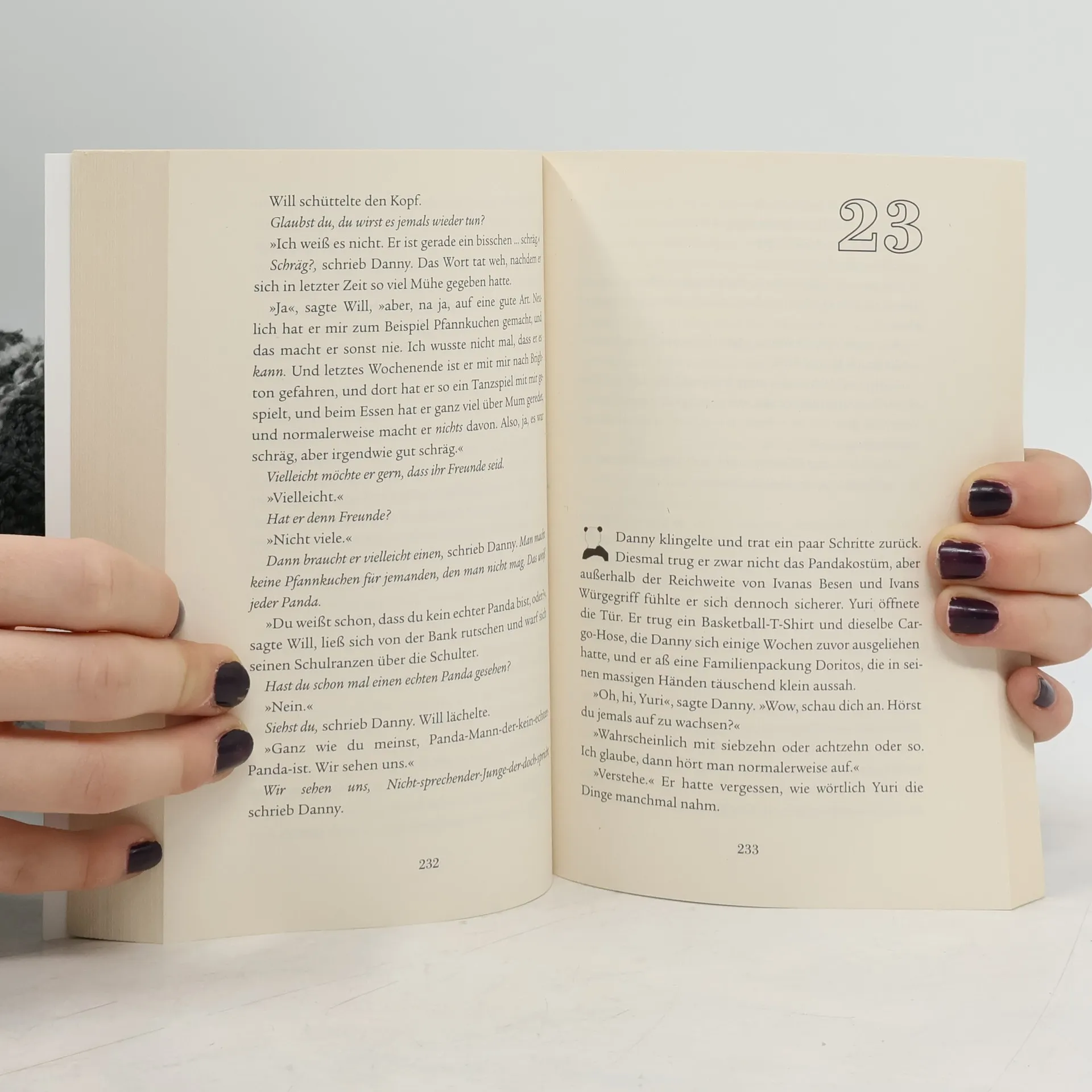 Ein Roman voller Situationskomik, der rührend und saukomisch zugleich eine der liebenswertesten Vater-Sohn-Beziehungen in der Literatur beschreibt. Wer »About a Boy« mochte, wird dieses Buch lieben. Lustiger und zu Herzen gehender als alles, was Sie bisher gelesen haben! Danny Malooley hat es schwer. Ein Glückspilz war er noch nie, aber seitdem seine Frau vor etwas mehr als einem Jahr bei einem Unfall ums Leben gekommen ist, läuft gar nichts mehr glatt. Sein kleiner Sohn Will hat aufgehört zu sprechen, Danny verliert den Job, und als ihm auch noch sein Vermieter mit Rausschmiss droht, kauft er von seinem letzten Geld ein Pandakostüm, um als Tanzbär Geld zu verdienen. Doch tanzen kann er leider auch nicht ... Ein Panda steht für Frieden und Freundschaft, aber so weit denkt Danny nicht. Das Kostüm ist ein Ladenhüter und billig, deshalb muss es als Verkleidung herhalten. Ein neuer Straßenkünstler ist geboren. Anfangs macht sich Danny vor allen Dingen lächerlich, aber als sich die Pole-Tänzerin Krystal seiner erbarmt und ihm Tanznachhilfe gibt, klingelt die Kasse so leidlich. Als Pandabär verkleidet beobachtet Danny eines Tages, wie sein kleiner Sohn Will von anderen Jungen schikaniert wird, und schreitet ein. Will fasst Vertrauen in den vermeintlich fremden Panda. Und er spricht.