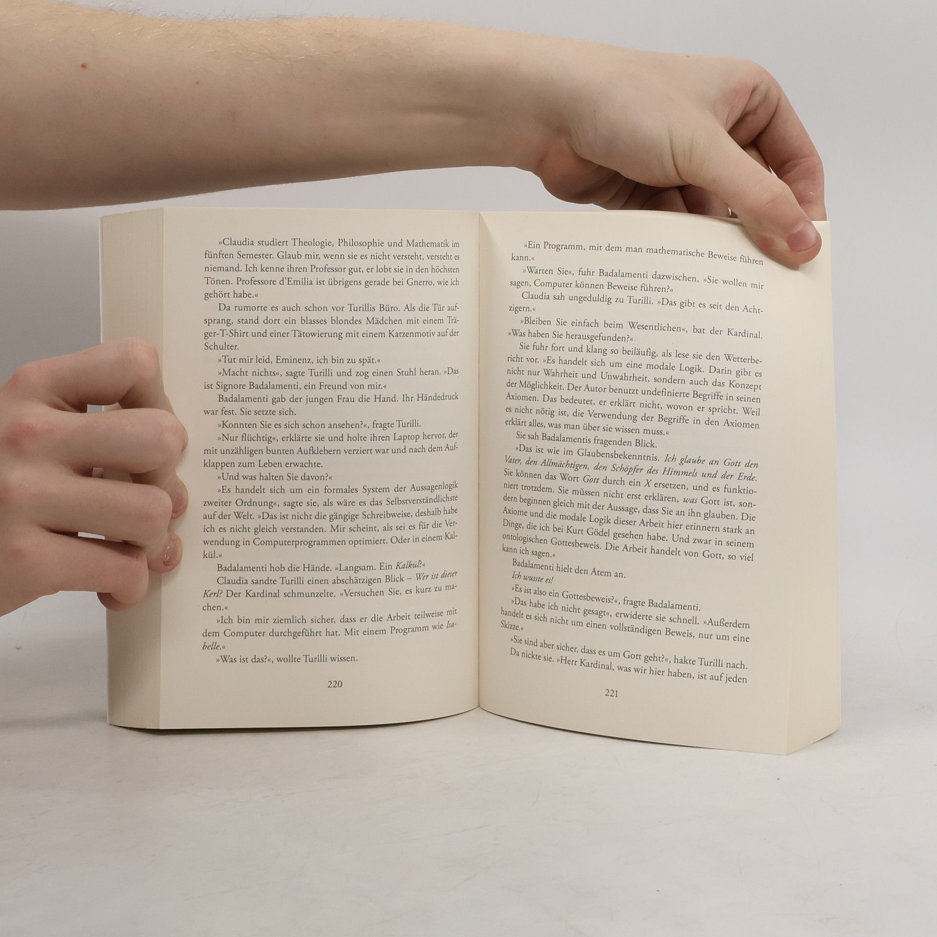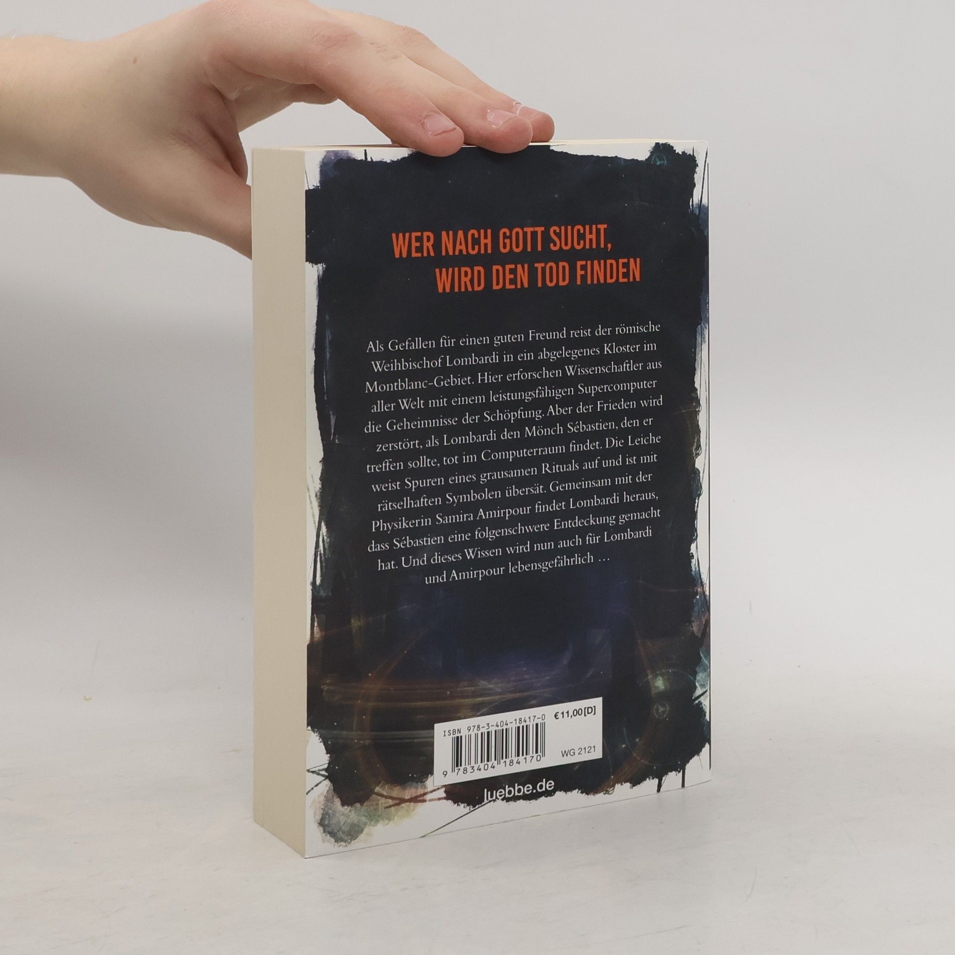 Wer nach Gott sucht, wird den Tod finden Als Gefallen für einen guten Freund reist der römische Weihbischof Lombardi in ein abgelegenes Kloster im Montblanc-Gebiet. Hier erforschen Wissenschaftler aus aller Welt mit einem leistungsfähigen Supercomputer die Geheimnisse der Schöpfung. Aber der Frieden wird zerstört, als Lombardi den Mönch Sébastien, den er treffen sollte, tot im Computerraum findet. Die Leiche weist Spuren eines grausamen Rituals auf und ist mit rätselhaften Symbolen übersät. Gemeinsam mit der Physikerin Samira Amirpour findet Lombardi heraus, dass Sébastien eine folgenschwere Entdeckung gemacht hat. Und dieses Wissen wird nun auch für Lombardi und Amirpour lebensgefährlich ...