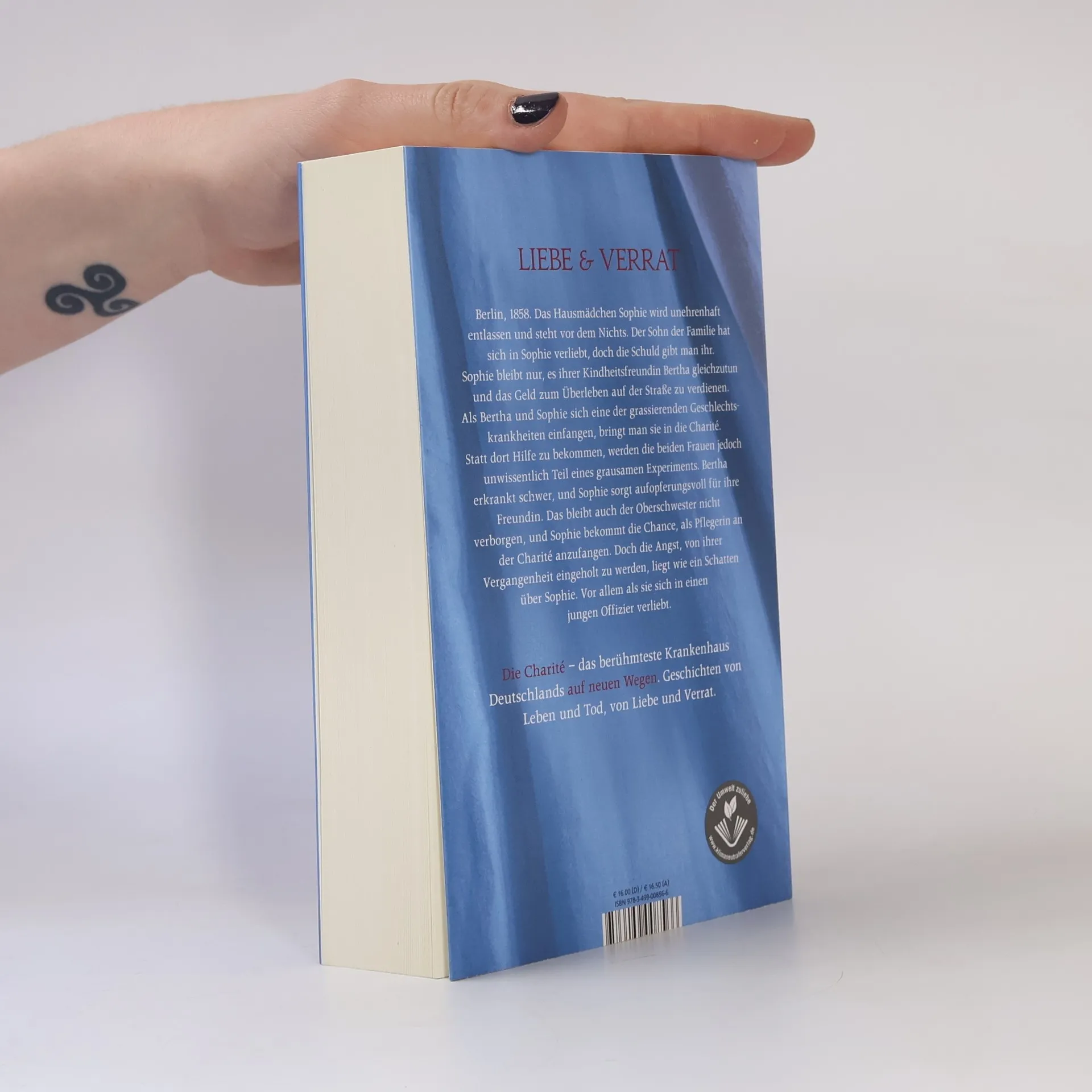 Die Bestsellerreihe geht endlich weiter! Die Charité – das berühmteste Krankenhaus Deutschlands auf neuen Wegen. Geschichten von Leben und Tod, von Liebe und Verrat. Berlin, 1858. Das Hausmädchen Sophie wird unehrenhaft entlassen und steht vor dem Nichts. Der Sohn der Familie hat sich in Sophie verliebt, doch die Schuld gibt man ihr. Sophie bleibt nur, es ihrer Kindheitsfreundin Bertha gleichzutun und das Geld zum Überleben auf der Straße zu verdienen. Als Bertha und Sophie sich eine der grassierenden Geschlechtskrankheiten einfangen, bringt man sie in die Charité. Statt dort Hilfe zu bekommen, werden die beiden Frauen jedoch unwissentlich Teil eines grausamen Experiments. Bertha erkrankt schwer, und Sophie sorgt aufopferungsvoll für ihre Freundin. Das bleibt auch der Oberschwester nicht verborgen, und Sophie bekommt die Chance, als Pflegerin an der Charité anzufangen. Doch die Angst von ihrer Vergangenheit eingeholt zu werden, liegt wie ein Schatten über Sophie. Vor allem als sie sich in einen jungen Offizier verliebt.