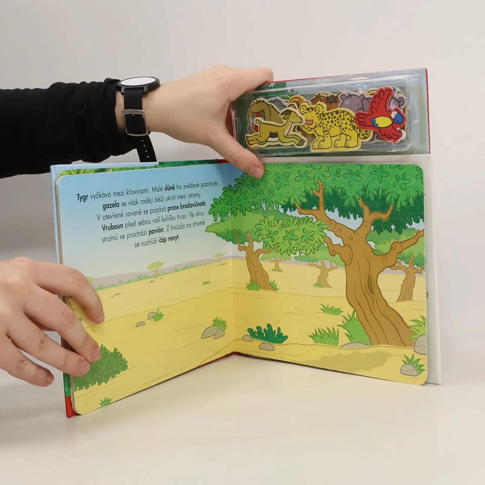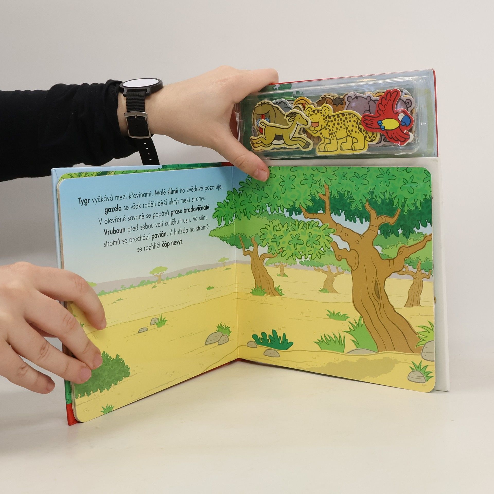 Hra s magnetickou knížkou představuje pro předškolní děti chytrou a poučnou zábavu. Jednoduché texty přinášejí zajímavé informace ze světa afrických zvířat a dotváření obrázků pomocí magnetek podporuje dětskou představivost a kreativitu.