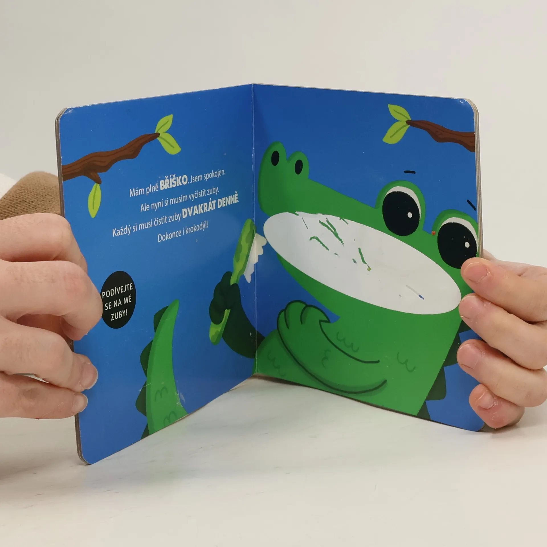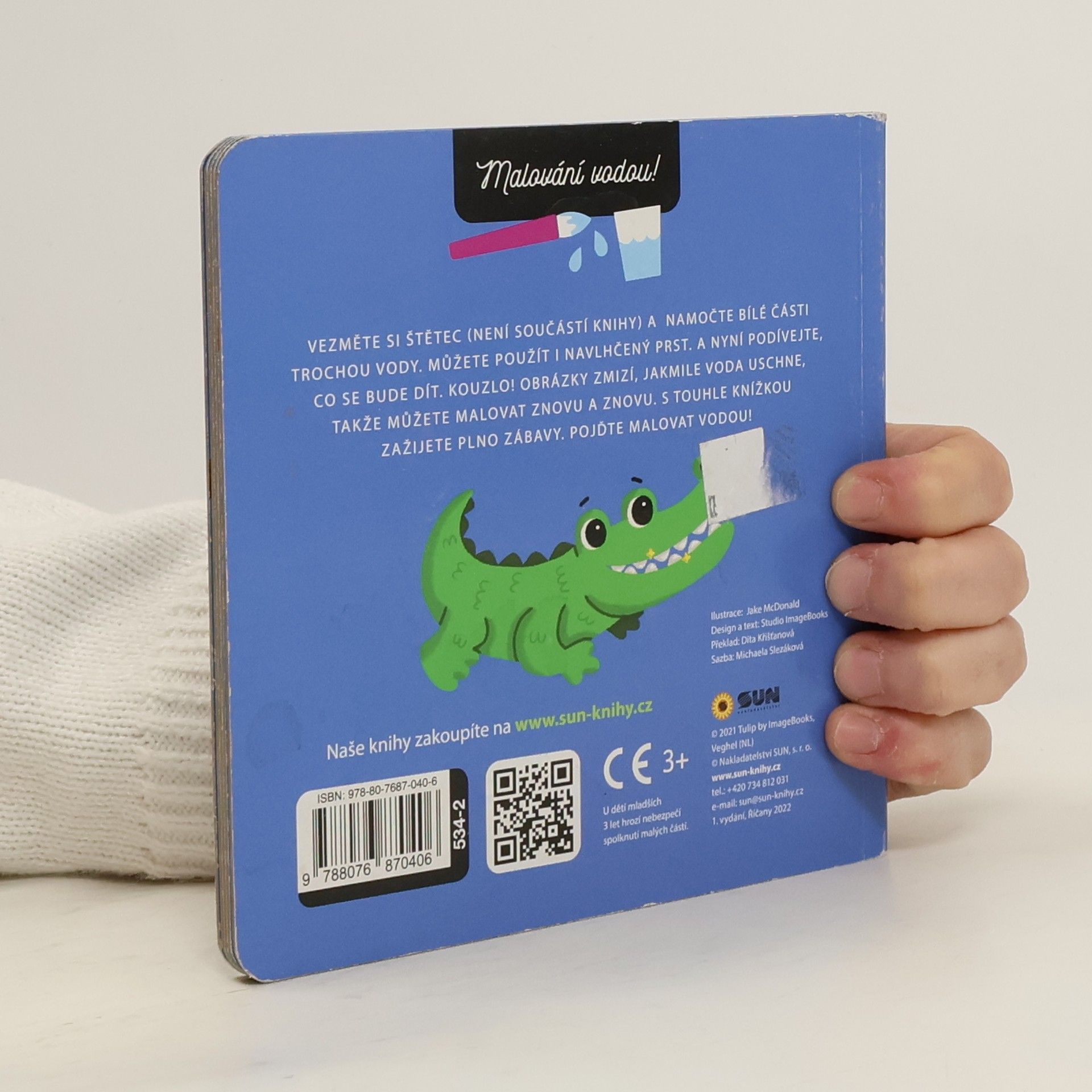 Krokodýl - si čistí zuby. Seznamte se s kamarádem krokodýlem, který si nerad čistí zuby. Dostane od své maminky nový kartáček, aby si zoubky lépe čistil. Chcete kartáček i zoubky vidět? Použijte štětec nebo prst, namočte jej... a objevte sílu vody! Kresby se objeví a zase zmizí, když voda vyschne. V této bezva knížce s tvrdými deskami pro menší děti můžete číst, hrát si i malovat znovu a znovu. Hurá do toho. Bude to zábava.