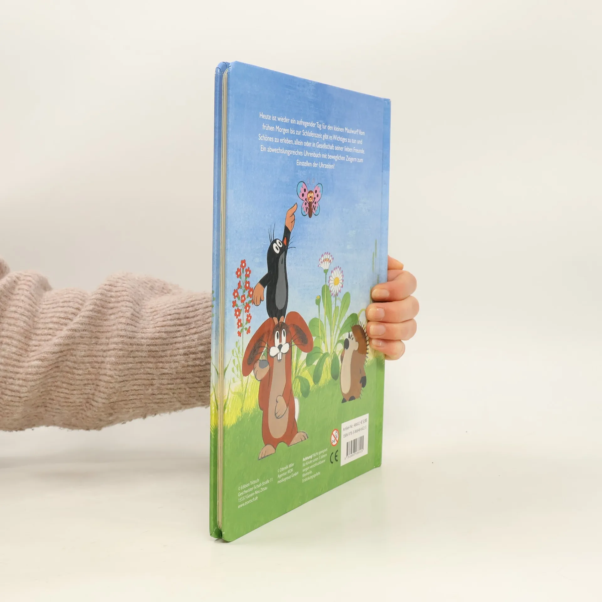 In diesem Uhrenbuch zeigen der Kleine Maulwurf und seine Freunden was sie alles erleben, vom frühen Morgen bis zur Schlafenszeit. Mit echtem Ziffernblatt und beweglichen Zeigern zum Nachstellen der Uhrzeiten.
