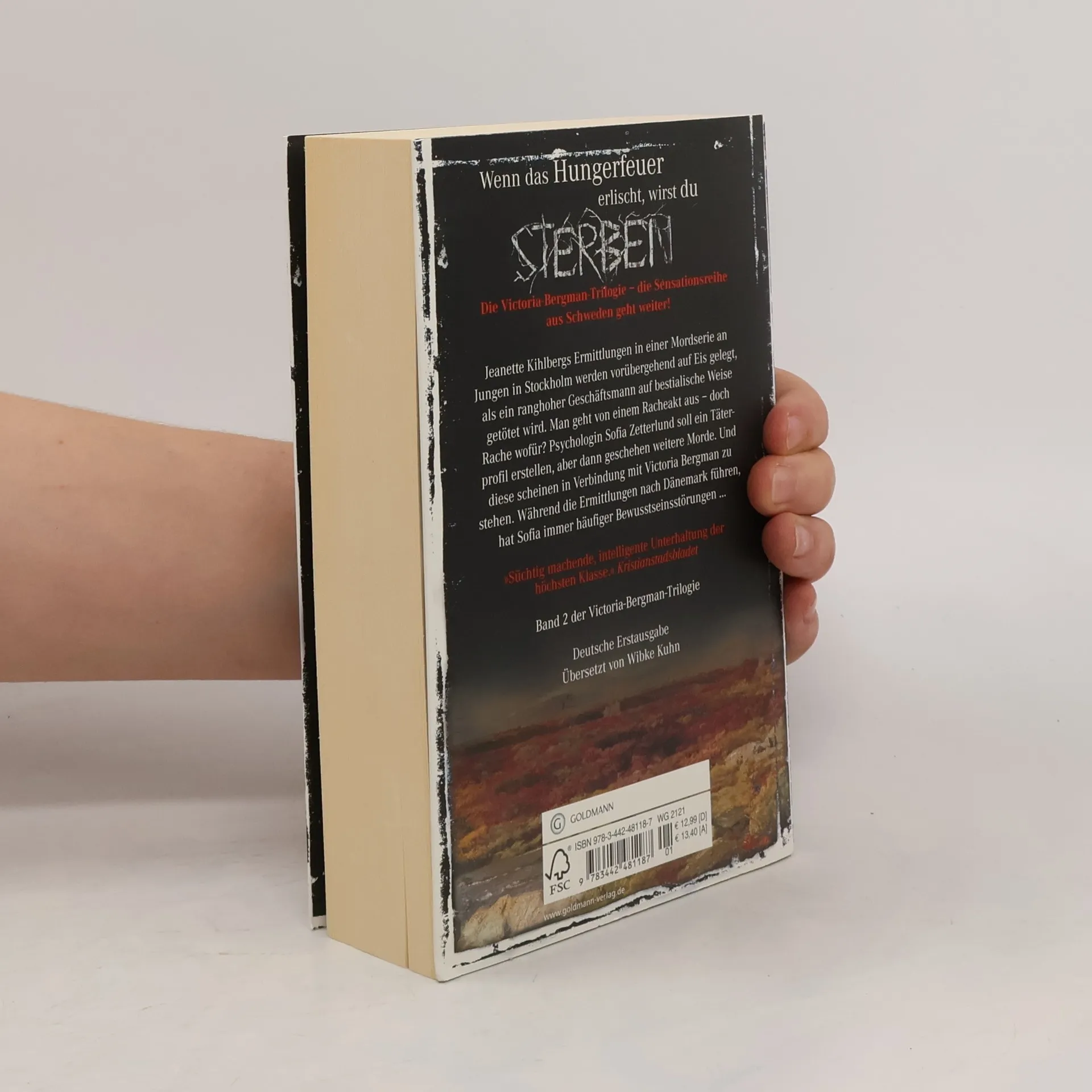 Ein Geschäftsmann wird brutal ermordet. Jeanette Kihlberg ermittelt mithilfe der Psychologin Sofia. Doch wer ist Sofia wirklich? Jeanette Kihlbergs Ermittlungen in einer Mordserie an Jungen in Stockholm werden vorübergehend auf Eis gelegt, als ein ranghoher Geschäftsmann auf bestialische Weise getötet wird. Man geht von einem Racheakt aus – doch Rache wofür? Psychologin Sofia Zetterlund soll ein Täterprofil erstellen, aber dann geschehen weitere Morde. Und diese scheinen in Verbindung mit Victoria Bergman zu stehen. Während die Ermittlungen nach Dänemark führen, hat Sofia immer häufiger Bewusstseinsstörungen ... „Krähenmädchen“ (Band 1 der Victoria-Bergman-Trilogie) ist im Juli 2014 erschienen. „Narbenkind“ (Band 2 der Victoria-Bergman-Trilogie) ist im September 2014 erschienen. „Schattenschrei“ (Band 3 der Victoria-Bergman-Trilogie) ist im November 2014 erschienen.
