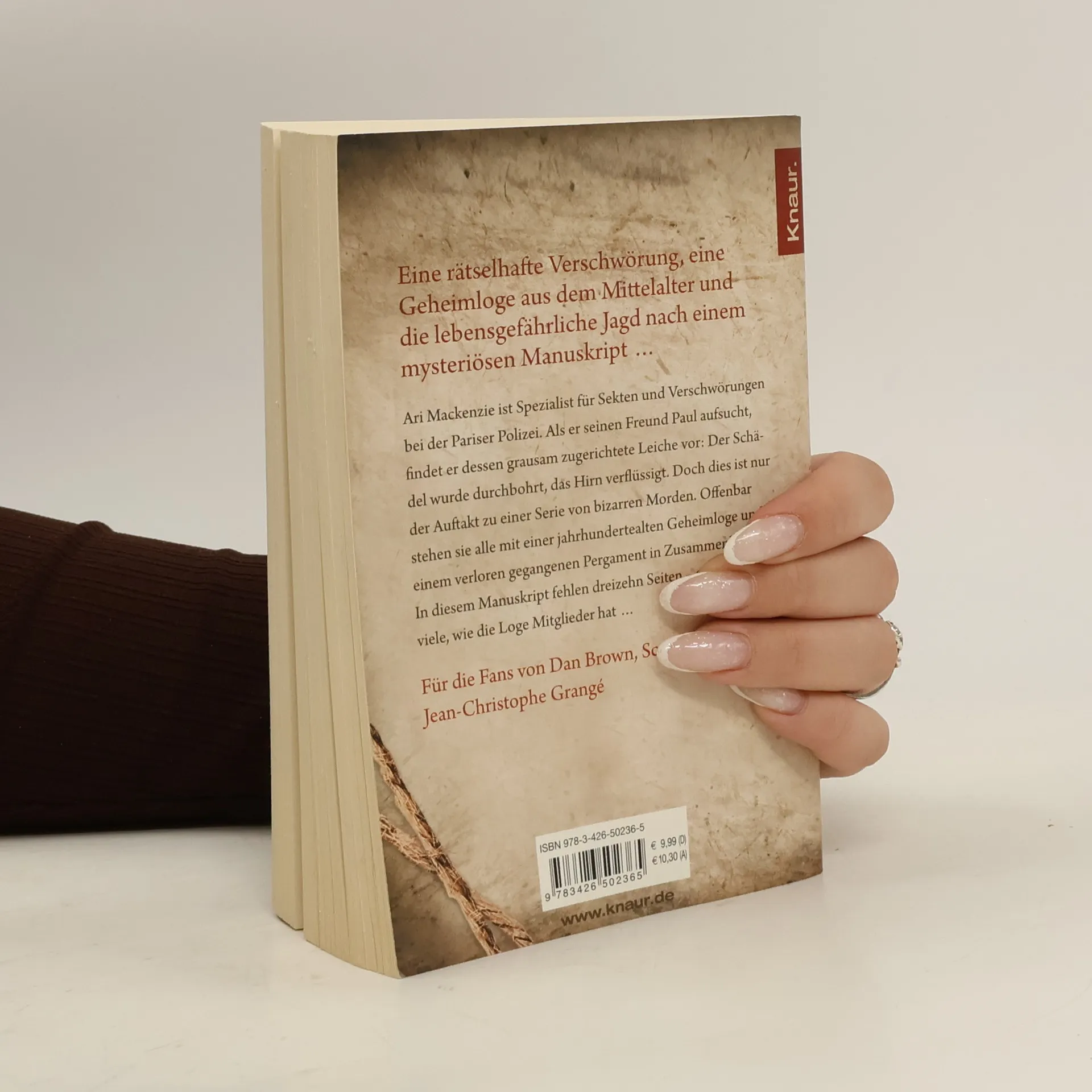 Ari Mackenzie ist Spezialist für Sekten und Verschwörungen bei der Pariser Polizei. Als er seinen Freund Paul aufsucht, findet er dessen grausam zugerichtete Leiche vor: Der Schädel wurde durchbohrt, das Hirn verflüssigt. Doch dies ist nur der Auftakt zu einer Serie von bizarren Morden. Offenbar stehen sie alle mit einer jahrhundertealten Geheimloge und einem verloren gegangenen Pergament in Zusammenhang. In diesem Manuskript fehlen dreizehn Seiten – genauso viele, wie die Loge Mitglieder hat …