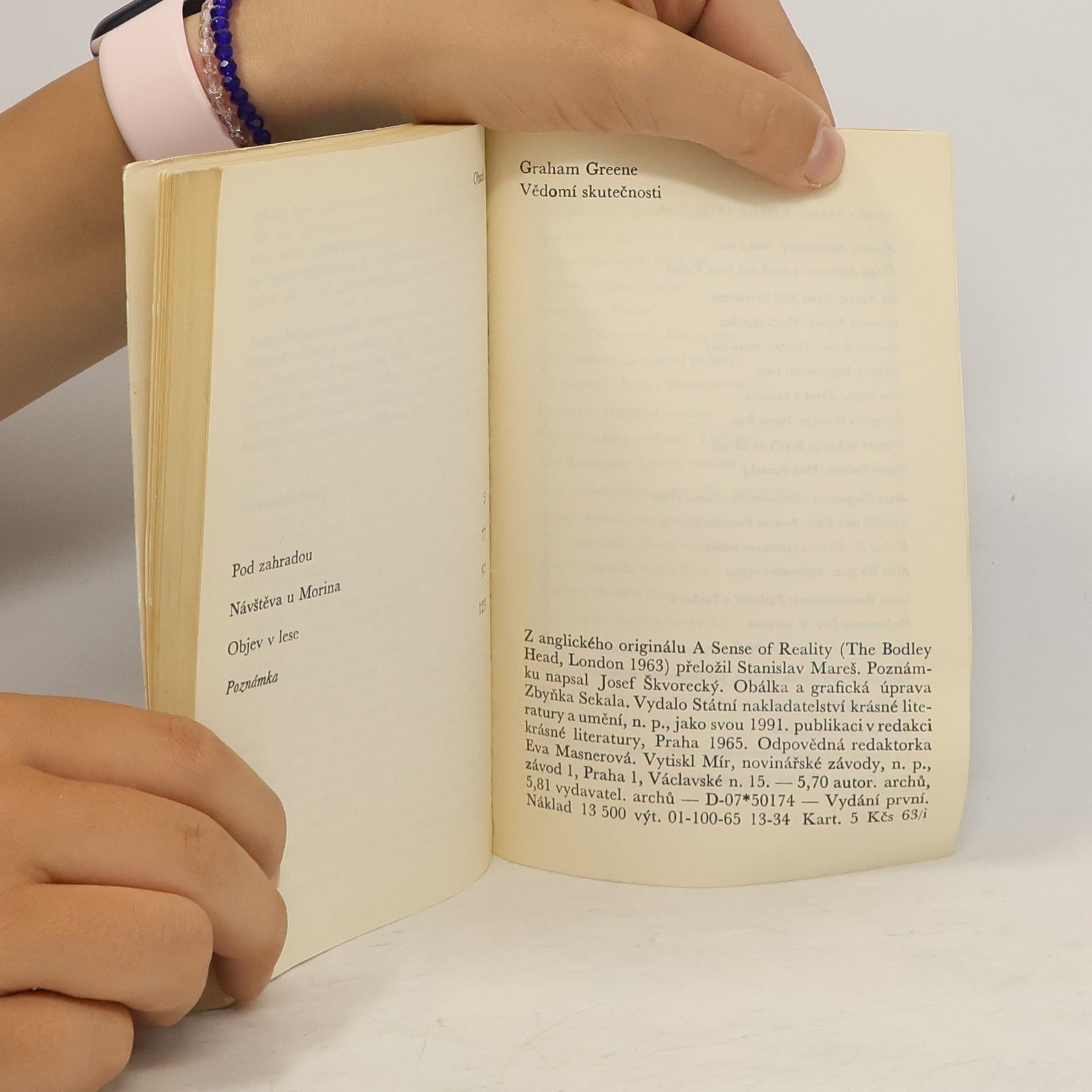 Povídky významného anglického spisovatele, jejichž určujícím momentem je hledání smyslu lidské existence. Tři povídky – Pod zahradou, Návštěva u Morina, Objev v lese –, jejichž určujícím momentem je hledání smyslu lidské existence. Představují základní rysy Greenovy tvůrčí podoby, ať vyprávějí o pohledu zestárnuvšího člověka na minulost, o setkání s oblíbeným spisovatelem, který přestal nábožensky smýšlet, anebo o dětské výpravě za hranice rodné vesnice a objevení neznámého světa. První z povídek spojuje svébytným způsobem fantastický dětský sen a skutečnost či zbytečnosti náboženství v životě člověka a třetí je otřesnou vizí světa, který prošel strašlivou katastrofou. Pozn. Josef Škvorecký