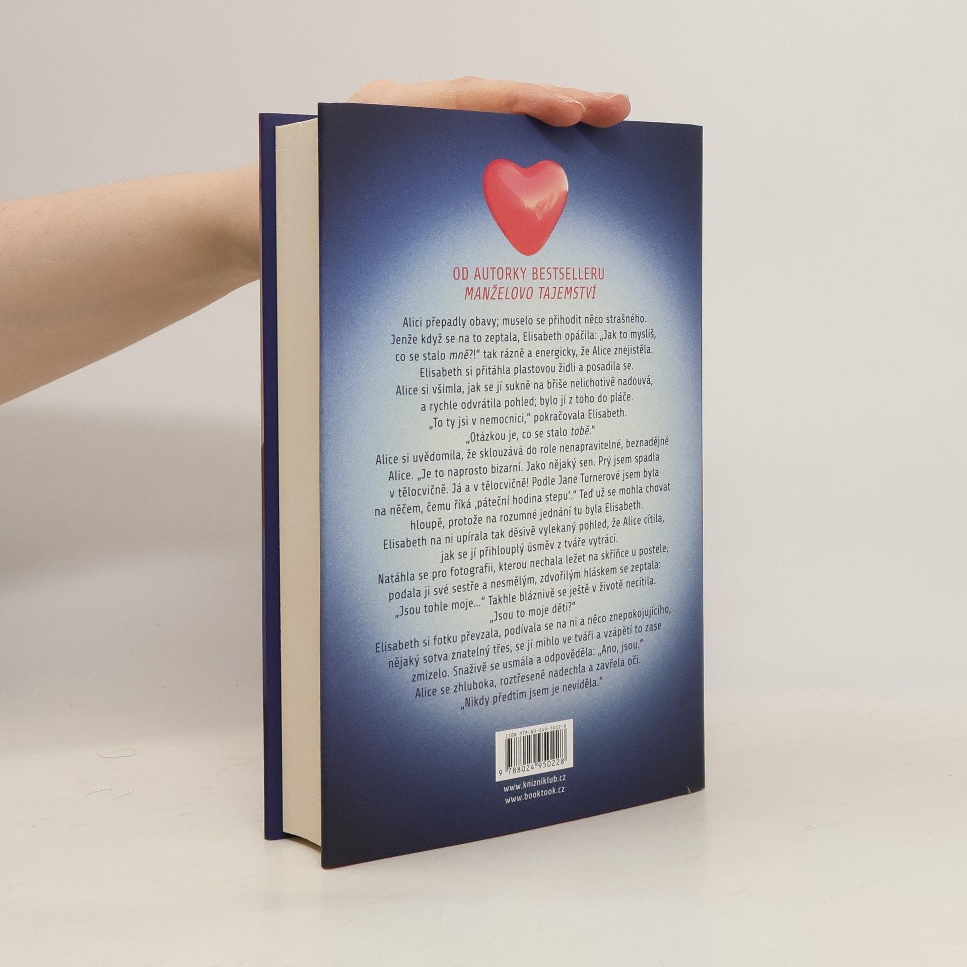 Když se Alice probere na zemi v posilovně, má na hlavě pořádnou bouli a myslí si, že je jí dvacet devět a čeká první dítě se svým superúžasným manželem Nickem. Jenomže pak se dozví, že se jí z paměti právě vymazalo deset let života a že je ve skutečnosti devětatřicetiletá neurotička, která nejraději tráví svůj volný čas v posilovně nebo na poradách školního výboru se ženami, jež kdysi nesnášela. Jak se to stalo, že se její život tak radikálně změnil? Proč ji její manžel nenávidí? Co tak hrozného provedla, že s ní její milovaná sestra skoro nemluví? A do toho si není schopná vůbec vzpomenout na svoje tři děti – ne, Alice se najednou vidí jinýma očima a ta nová žena, o které jí vyprávějí, se jí vůbec nezamlouvá. Najde způsob, aby se znovu stala tím člověkem, kterým bývala?