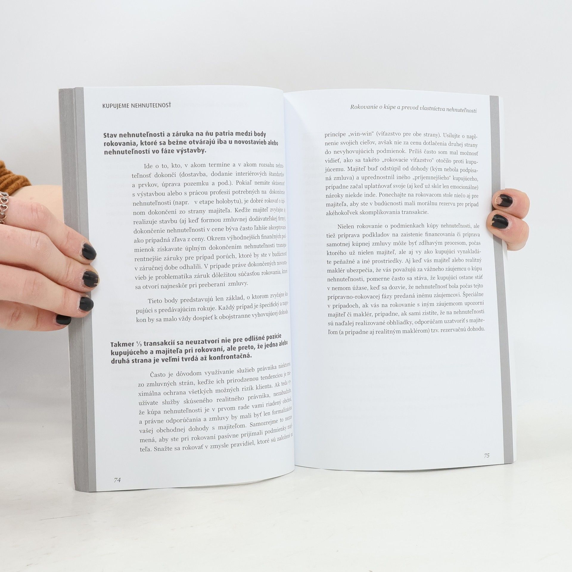Kupujeme/Predávame nehnuteľnosť pomôže každému, kto zvažuje kúpu alebo predaj nehnuteľnosti, prípadne chce začať pracovať alebo sa zdokonaľovať ako realitný maklér. Zrozumiteľnou formou popisuje celý proces predaja a kúpy nehnuteľnosti tak, aby predávajúci aj kupujúci veľmi dobre rozumeli, čo je pre nich dôležité, akých chýb sa majú vyvarovať a čo sú "zásadné drobnosti", ktoré im pomôžu zrealizovať celú transakciu bezpečne a výnosne. Ak zvažujete kúpu nehnuteľnosti alebo plánujete predaj vášho bytu či domu, táto kniha bude vaším neoceniteľným pomocníkom. Špeciálnou časťou knihy je kapitola zo zákulisia natáčania úspešnej TV relácie Nové bývanie, ktorá je obohatená aj o fotografie z natáčaní a rozhovor s moderátorom relácie Vladom Voštinárom.