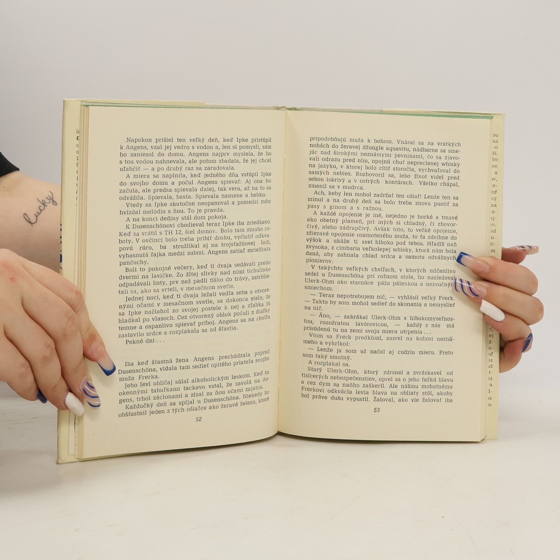 Čitateľ vidí plasticky vyvstávať pred sebou nielen všetky hlavné postavy: anjelskú Angens, materinskú, sladkú, tichú a neskôr tragicky krásnu s dieťaťom v náručí, keď čaká na "mŕtveho", osudovú, vášnivú a kruto priamu Patriciu, mladú pôvabné milujúce dievča a zároveň záhadnú "femme fatale".