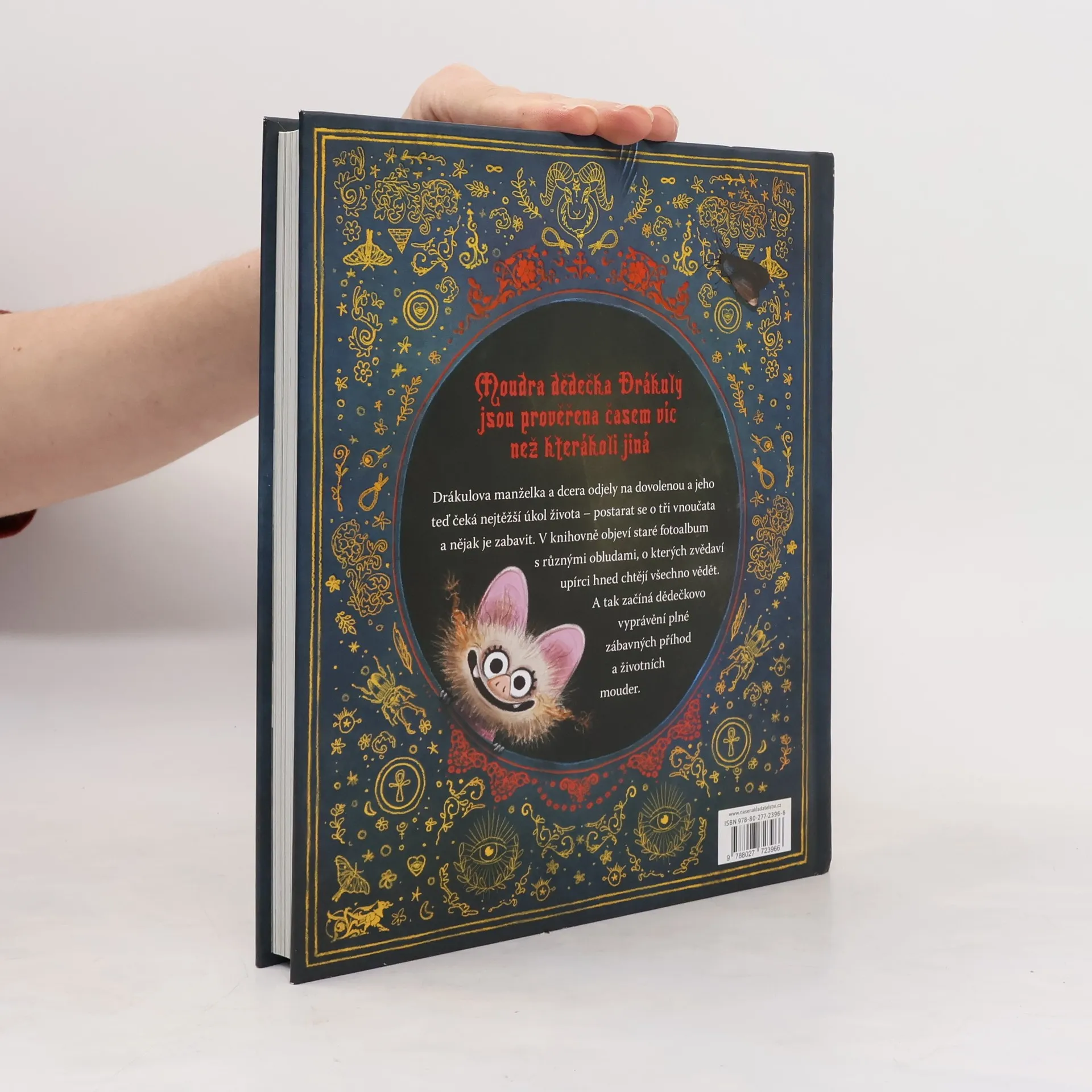 Úsměvné a napínavé vyprávění o tom, co se stane, když upíří dědeček zůstane poprvé za 587 let svého života, a hned na celý víkend, sám se svými vnoučaty. Drákulova manželka a dcera odjely na dovolenou a dědečka čeká těžký úkol, postarat se o tři vnoučata a nějak je zabavit. V knihovně objeví staré fotoalbum s různými obludami a tak začíná vyprávění plné zábavných příhod i životních mouder. Nakladatelská anotace. Kráceno.