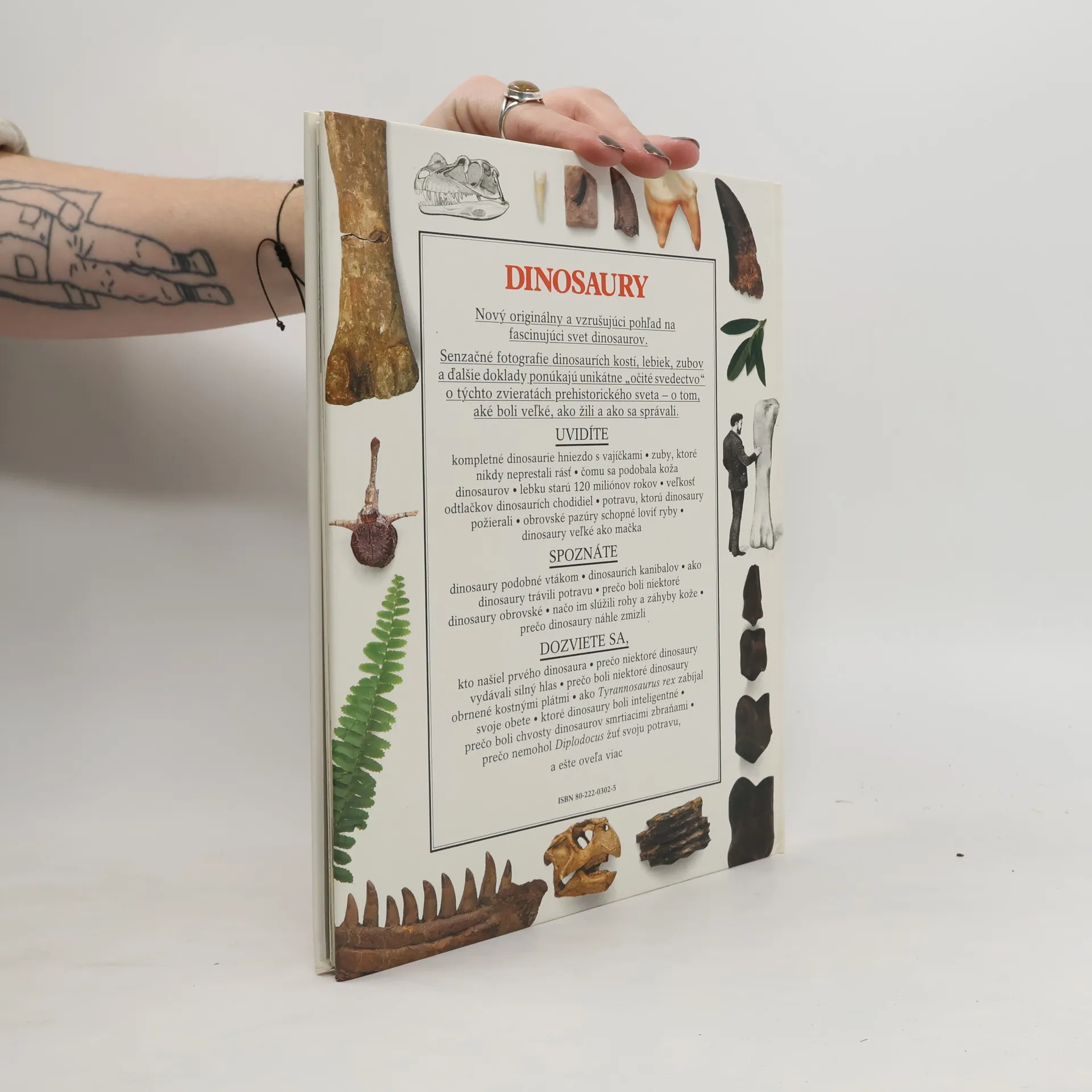 Navštivme úchvatný svět dinosaurů, poznejme jejich vývoj, chování, způsob života a důvody jejich záhadného zániku. Kapitoly: Čo boli dinosaury ?, Dávne objavy, Krajina dinosaurov, Malé a veľké, S dlhým krkom, Bránili sa chvostom, Potrava dinosaurov, Mäsožravce, Bylinožravce, Obdivuhodné hlavy, Trojrohá tvár, Tuhá koža, Platňochrbté dinosaury, Rýchlonohé jaštery, Na dvoch alebo štvornožky ?, Starodávne odtlačky, Pazúry, Vajíčka a hniezda, Zrod a dospievanie, Zánik dinosaurov, Vták či jašter ?, Ako nájsť dinosaura ?, Pravá podoba, V osídlach času, Koniec jednej éry, Legendy a mýty.