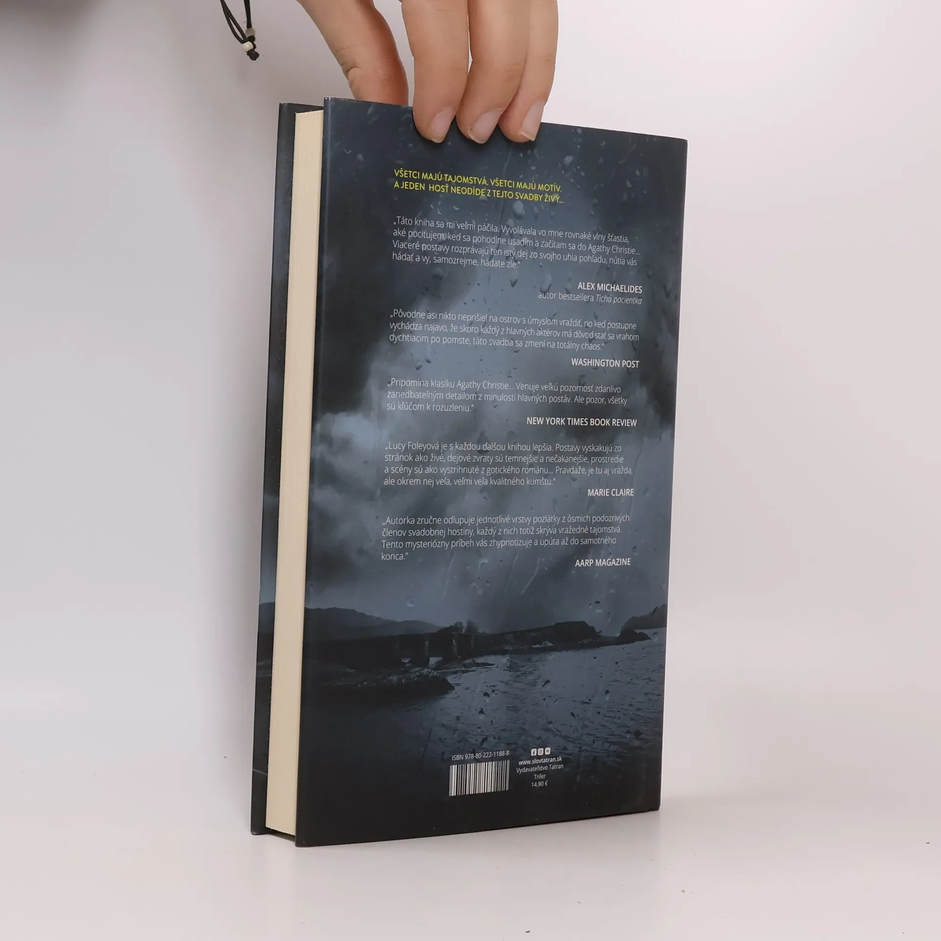 "Všetci majú tajomstvo. Všetky majú motív. Jeden hosť neodíde z tejto svatby živý." Strhujúci a zamotaný triler štuktúrou evokuje štýl klasickej detektívky Agathy Christie. Na írsky ostrov neďaleko pobrežia prichádzajú hostia na neobyčajnú svadobnú hostinu. Príťažlivý ženích je vychádzajúca televízna hviezda, nevesta zase inteligentná a ambiciózna vydavateľka časopisov. Starí priatelia sa po čase stretnú a na povrch vyplávajú skryté tajomstvá. Sotva rozkrojili svadobnú tortu, jedného z hostí nájdu mŕtveho. A keď búrka znásobí svoju zúrivosť, všetci zostanú uväznení na ostrove. Jeden z nich je mŕtvy. Otázkou je, kto z nich je vrah.