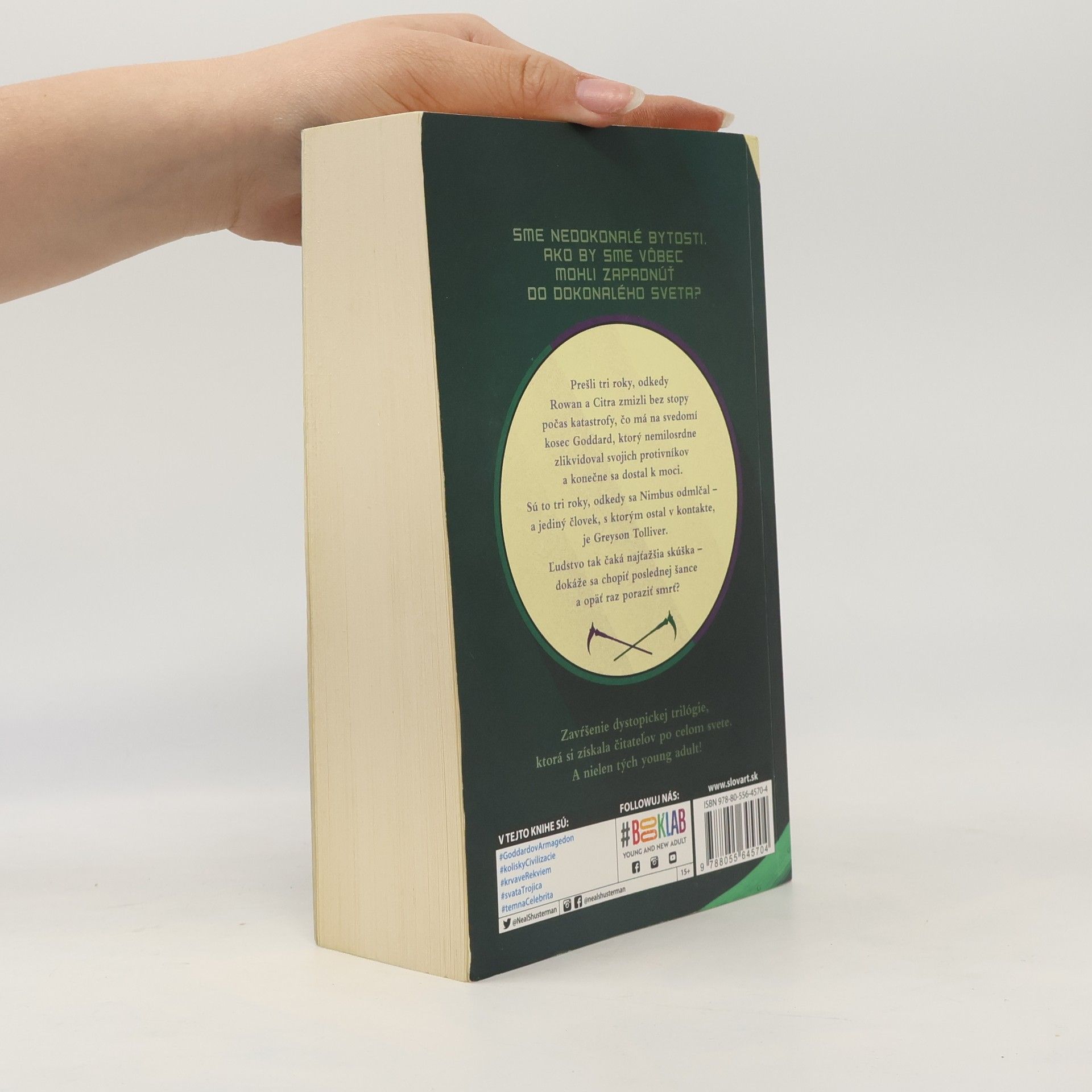 Finále dystopickej trilógie, ktorá si získala čitateľov po celom svete. A nielen tých young adult! Prešli tri roky, odkedy Rowan a Citra zmizli bez stopy – počas katastrofy, čo má na svedomí kosec Goddard, ktorý nemilosrdne zlikvidoval svojich protivníkov a konečne sa dostal k moci. Sú to tri roky, odkedy sa Nimbus odmlčal – a jediný človek, s ktorým ostal v kontakte, je Greyson Tolliver. A je to práve tretí diel dystopickej série zo sveta Koscov, v ktorom sa osud ľudstva, „odsúdeného na večný život“, zavŕši. Predtým však budú musieť nové spojenectva aj staré priateľstvá prejsť najťažšou skúškou a možno opäť raz poraziť smrť.