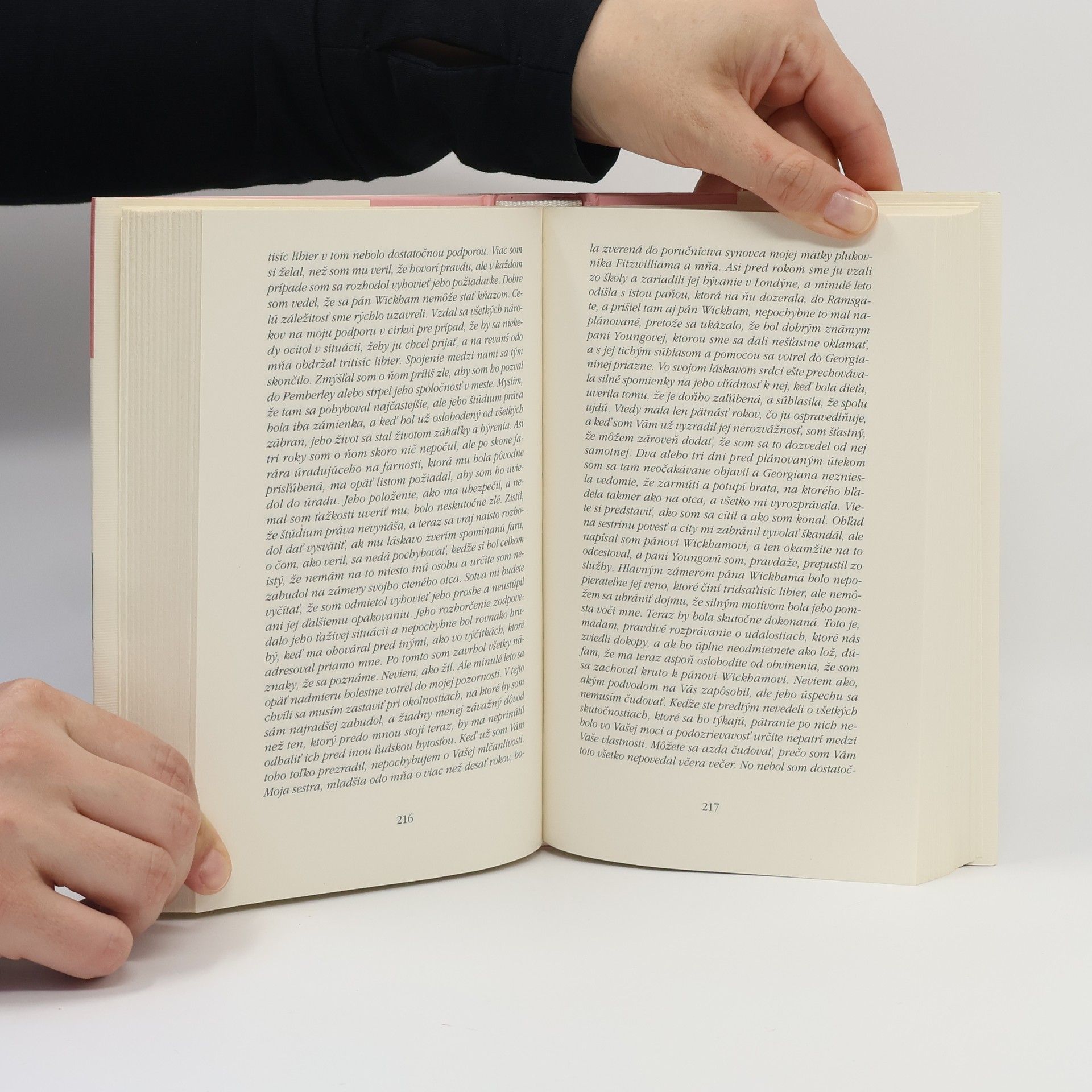 Slávny román anglickej prozaičky, klenot svetovej klasickej tvorby, o tom, ako môže príchod mladého muža prevrátiť hore nohami život v rodine s piatimi dcérami. V ovzduší sa vznáša pýcha, láska, predsudky, spoločenské konvencie, zlomené srdcia i spoločenský škandál, no aj sebapoznanie a pochopenie... Príbeh lásky a hodnôt odkrýva vzťahy medzi spoločenskými vrstvami Anglicka 18. storočia. Jane Austen sa pohybuje na hrane komédie a vážnosti, jej vtipné postrehy prezrádzajú bystrú a nemilosrdnú pozorovateľku. 2. vydanie