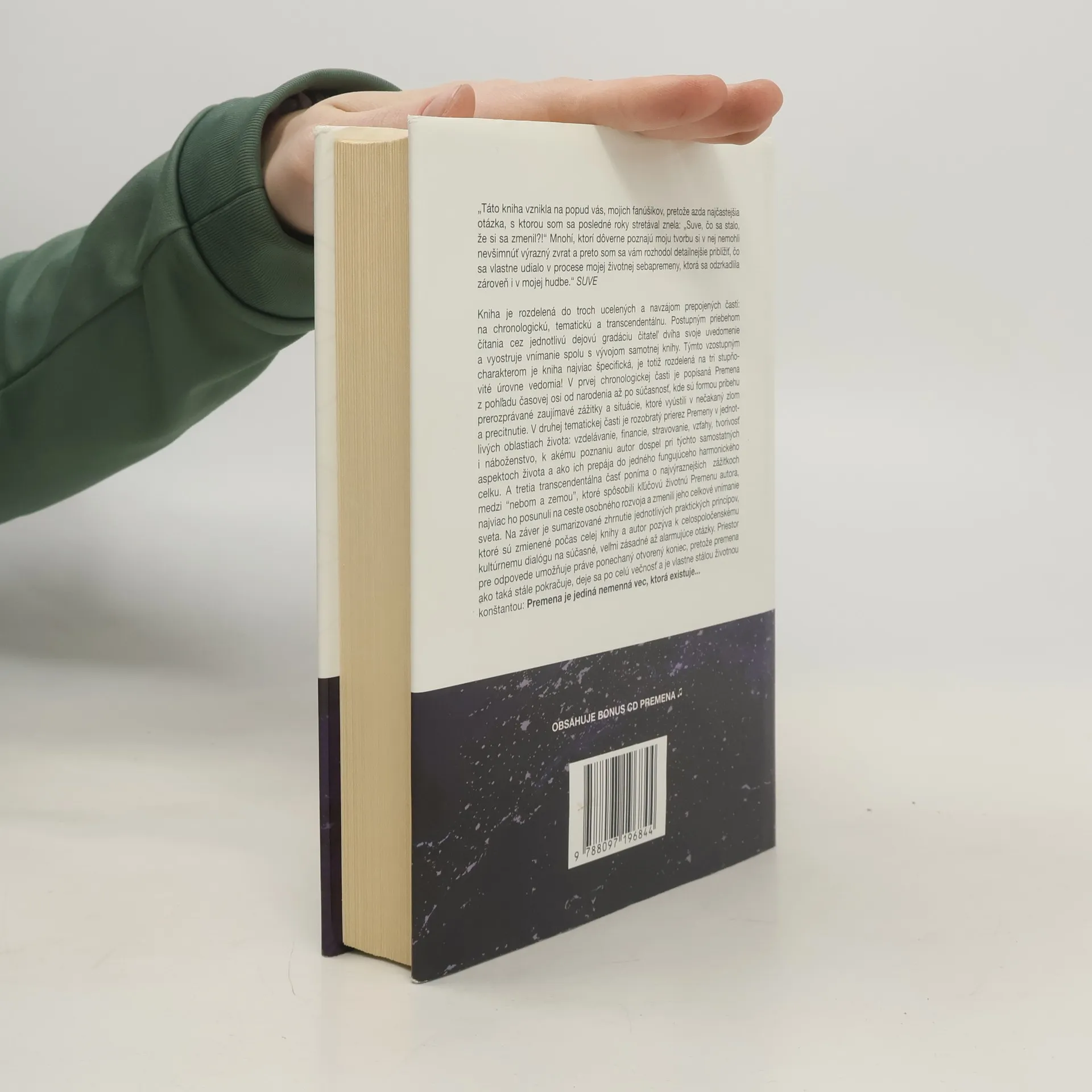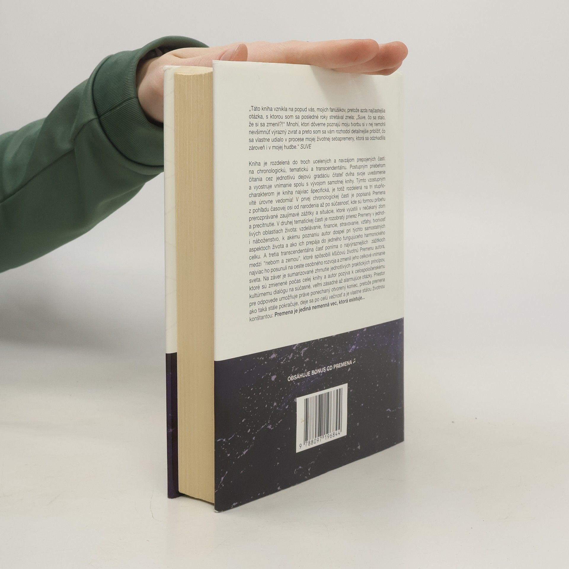 Dlhoočakávaný knižný debut predstaviteľa slovenského uvedomelého hip-hopu, ktorý prešiel vo svojom živote výraznou sebapremenou. Podnetom k napísaniu tejto knihy bola častá otázka okolia: „Suve, čo sa stalo, že si sa zmenil?“ Kniha je rozdelená do troch ucelených a zároveň prepojených častí: chronologickú, tématickú a transcendentálnu. Postupným čítaním cez dejovú gradáciu čitateľ pozdvihuje svoje vnímanie a uvedomenie spolu s vývojom samotnej knihy. Titul je rozdelený na tri rôzne úrovne vedomia.