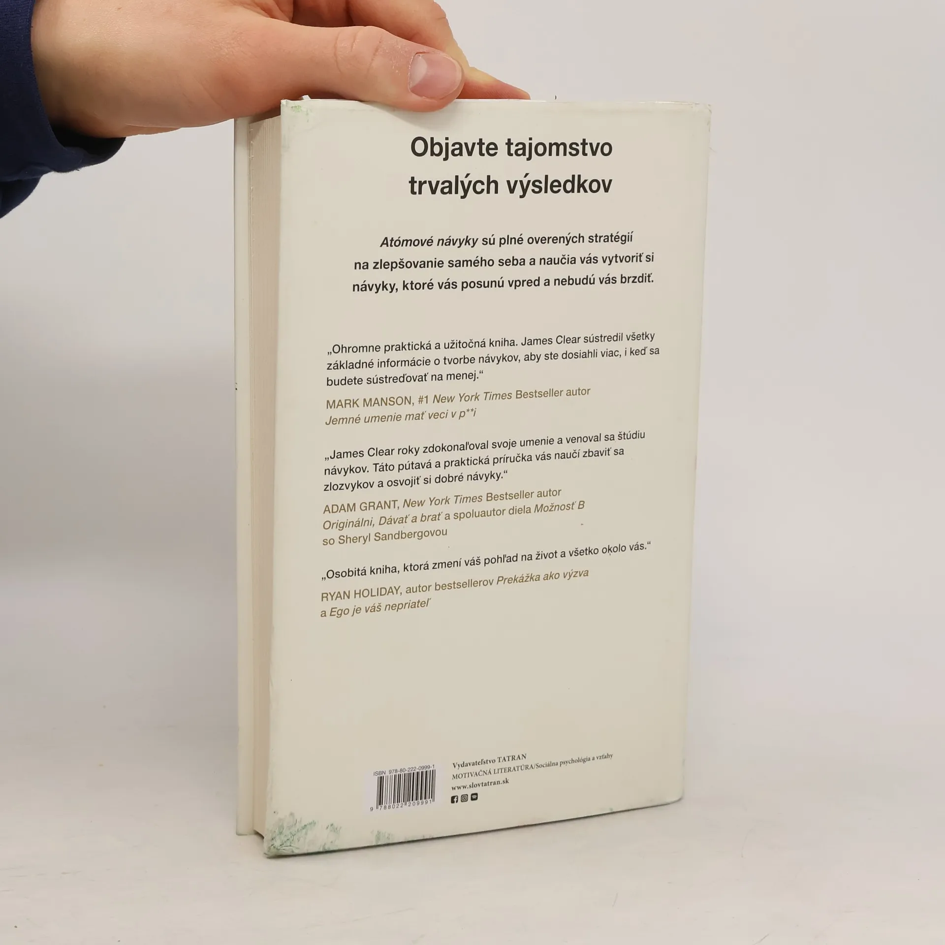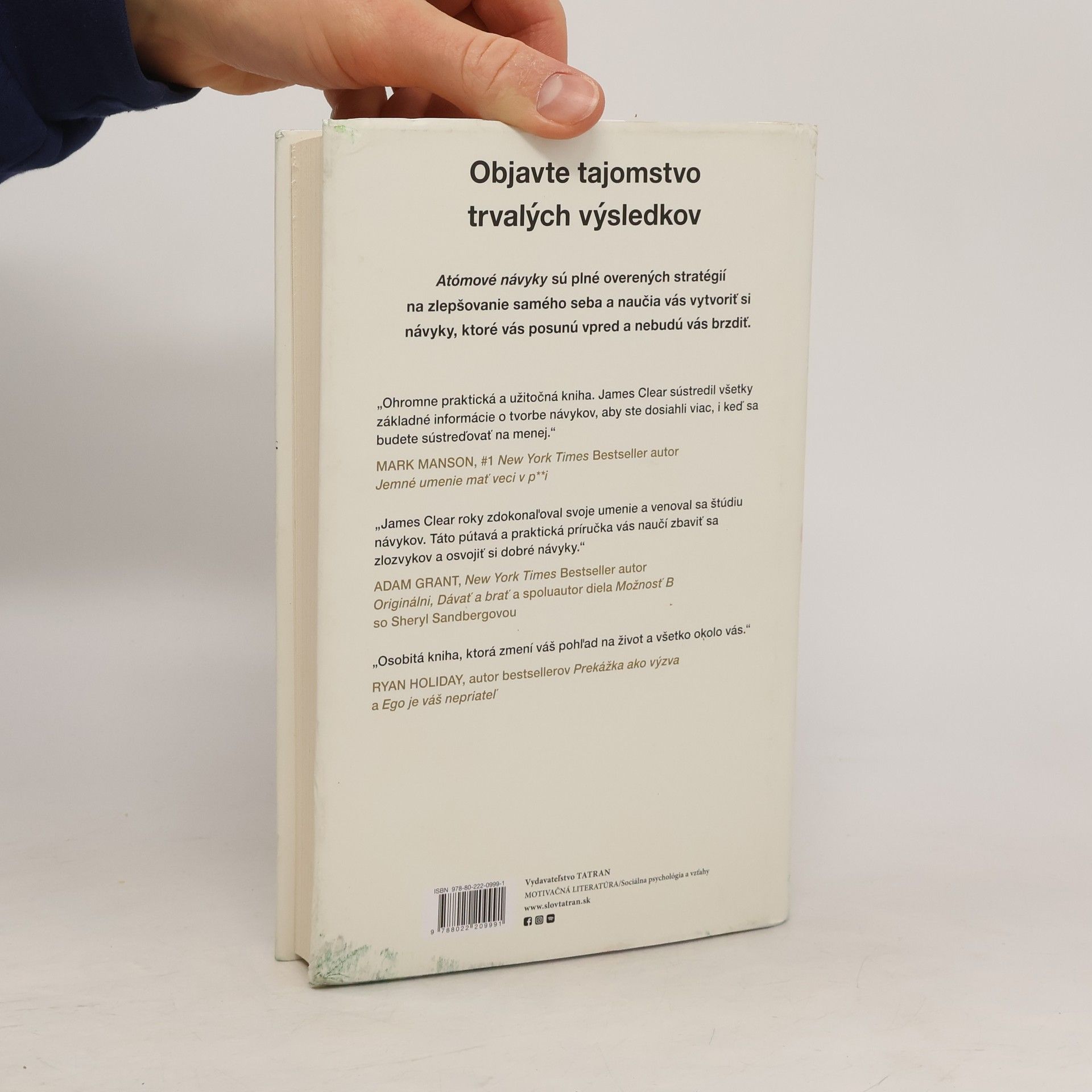 Atómové návyky ponúkajú overený návod na každodenné zlepšovanie o jedno percento, nezávisle od vašich cieľov. James Clear, popredný odborník na tvorbu návykov, odhaľuje praktické stratégie, ktoré vás naučia osvojiť si drobné prejavy správania vedúce k pozoruhodným výsledkom. Ak máte problém s menením návykov, nie je to o vás, ale o systéme, ktorý ste si zvolili. Neopakujete zlozvyky preto, že sa nechcete zmeniť, ale preto, že ste si vybrali nesprávny prístup. Nestúpate na úroveň svojich cieľov, klesáte na úroveň svojich systémov. S týmto prístupom získate plán na dosiahnutie nových výšin. Clear rozkladá zložité témy na jednoduché správanie, ktoré môžete okamžite zaviesť do svojho života. Čerpá z biológie, psychológie a neurovied, aby vytvoril zrozumiteľnú príručku, ktorá vám pomôže vnímať dobré návyky ako nevyhnutné a zlé ako nemožné. Inšpiruje vás pravdivými príbehmi olympijských medailistov, úspešných podnikateľov a iných, ktorí sa pomocou malých návykov dostali na vrchol. Zmení to, ako uvažujete o pokroku, a poskytne vám nástroje na posun – či už ste športovec, líder, alebo jednotlivec, ktorý chce skoncovať s fajčením, schudnúť, zbaviť sa stresu či dosiahnuť trvalý úspech.