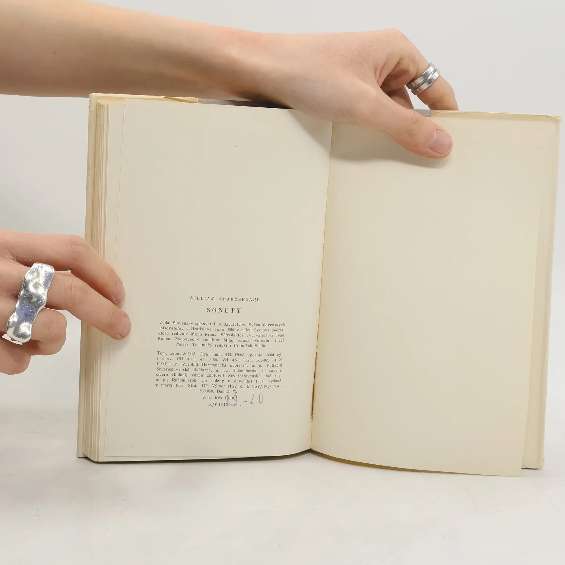 Prvé slovenské vydanie Shakespearových sonetov. Vnútro knihy je vyzdobené 6 drevorytmi, jeden ďalší sa nachádza na prebale.