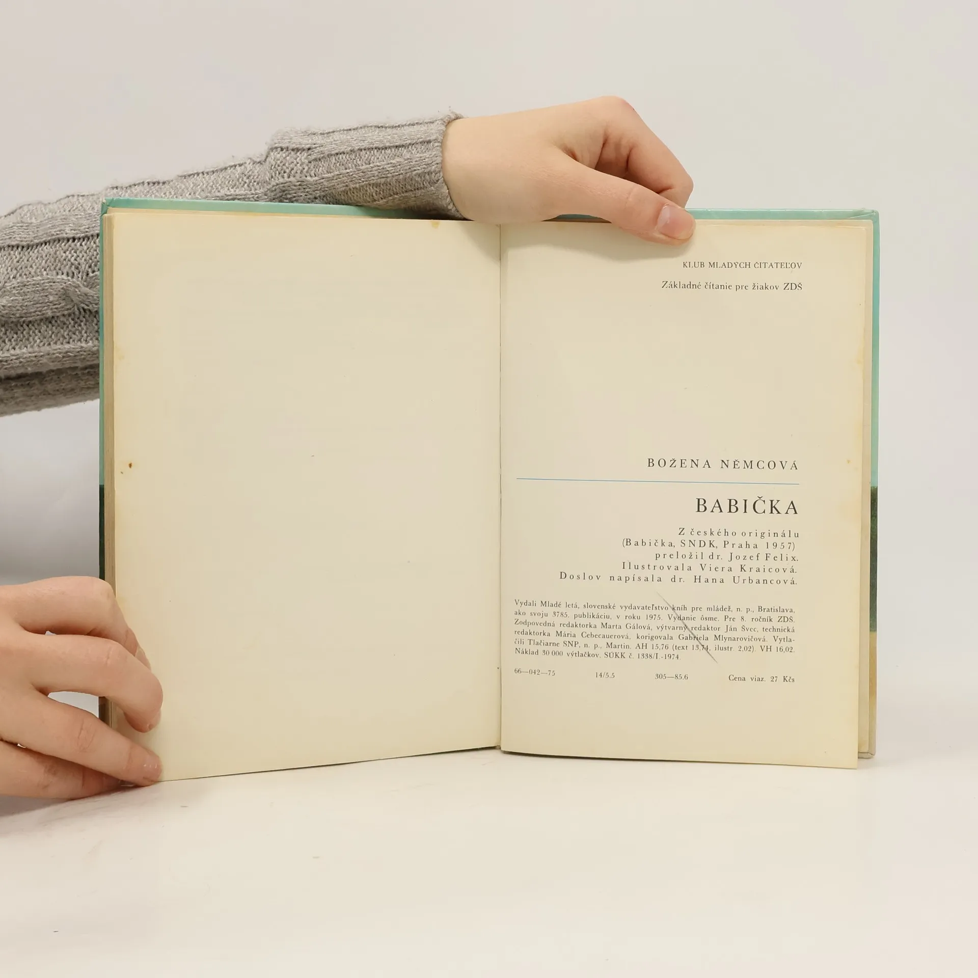 „Šťastná to žena!“ — múdra, láskavá, starostlivá, milujúca svoju rodinu, vychovávajúca vnúčatá a ochotná poskytnúť každému dobrú radu i pomoc. Taká je babička, hlavná hrdinka knihy Boženy Němcovej. Dielo sa dočkalo divadelného, televízneho i rozhlasového spracovania a mnohých vydaní aj prekladov. Ponúkame vám Babičku v slovenskom preklade Terézie Vansovej. Klasika zo Zlatého fondu SME. Digitalizovaná podoba publikace: Božena Němcová. Babička. Nákladom Slovenského východu. Košice 1928. 332 s. Terézia Vansová preložila.