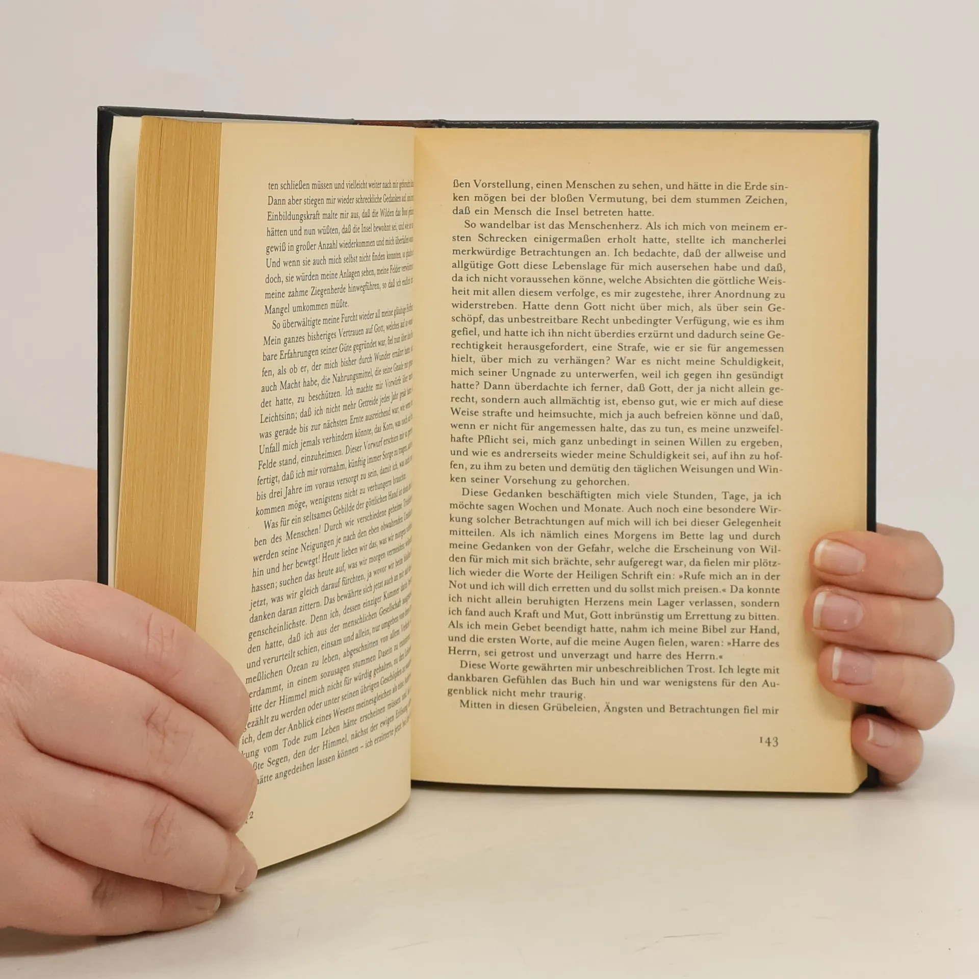 »Das Leben und die seltsamen Abenteuer des Robinson Crusoe, eines Seemanns aus York. Welcher achtundzwanzig Jahre ganz allein auf einer unbewohnten Insel vor der amerikanischen Küste, nahe der Mündung des großen Orinoco lebte, wohin er nach einem Schiffbruch, bei dem die ganze Besatzung außer ihm selbst ums Leben kam, verschlagen wurde. Nebst dem Bericht wie er auf wundersame Weise durch Piraten gerettet wurde. Geschrieben von ihm selbst.« So lautet der volle Titel des Buches, dessen wichtigste Begebenheiten hier in Auswahl dargeboten werden. Gekürzte Ausgabe