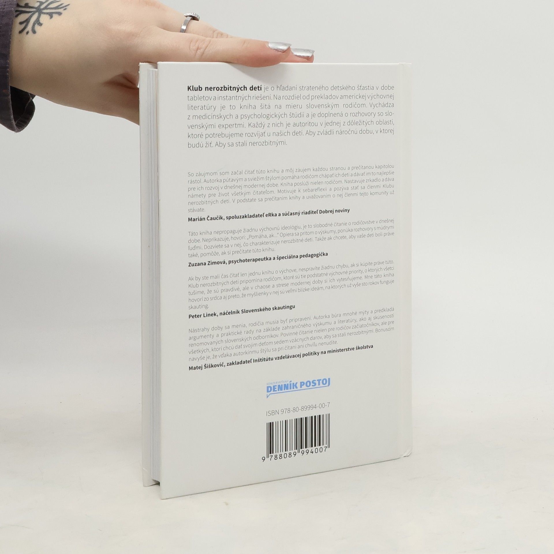 Klub nerozbitných detí je o hľadaní strateného detského šťastia v dobe tabletov a instantných riešení. Na rozdiel od prekladov americkej výchovnej literatúry je to kniha šitá na mieru slovenským rodičom. Vychádza z medicínskych a psychologických štúdií a je doplnená o rozhovory so slovenskými expertmi. Každý z nich je autoritou v jednej z dôležitých oblastí, ktoré potrebujeme rozvíjať u našich detí. Aby zvládli náročnú dobu, v ktorej budú žiť. Aby sa stali nerozbitnými.