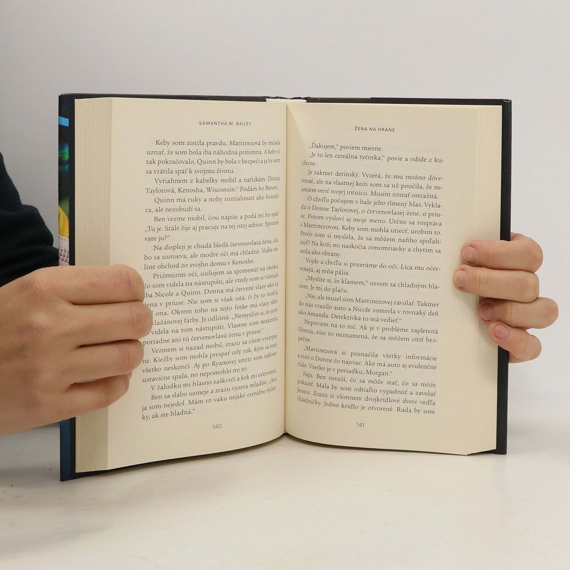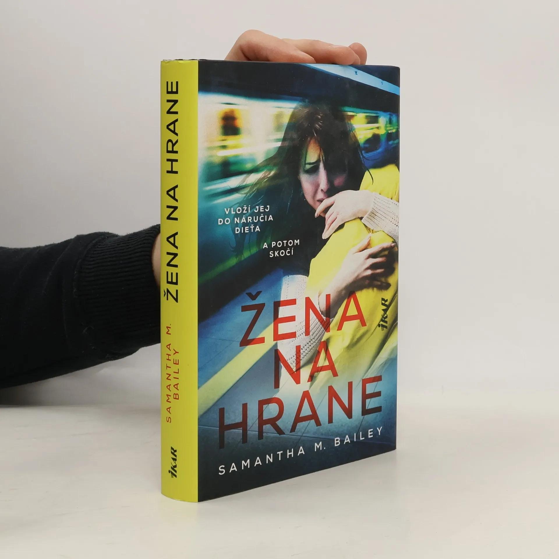 Morgan Kincaidová je na ceste domov z práce, keď jej cudzia žena na nástupišti vloží do náručia dieťa a bez varovania skočí pod vlak. Morgan nikdy predtým tú ženu nevidela a nechápe, prečo by sa matka vzdala svojho dieťaťa a zabila sa. Mätie ju aj čosi iné – odkiaľ tá žena poznala jej meno. Na výsluchu sa Morgan dozvie, že šlo o Nicole Markhamovú a že žiadny svedok nie je ochotný potvrdiť jej verziu udalosti, čo z nej robí hlavnú podozrivú. Morgan v snahe dosvedčiť svoju nevinu rýchlo pátra po informáciách o posledných dňoch Nicolinho života. Trpela depresiou, alebo jej niečo hrozilo? Zrazu si uvedomí, že v nebezpečenstve môže byť aj ona. Žena na hrane je výnimočný a napínavý triler o tom, čoho je schopná žena, ak chráni svoje dieťa – hoci by to znamenalo obetovať vlastný život.