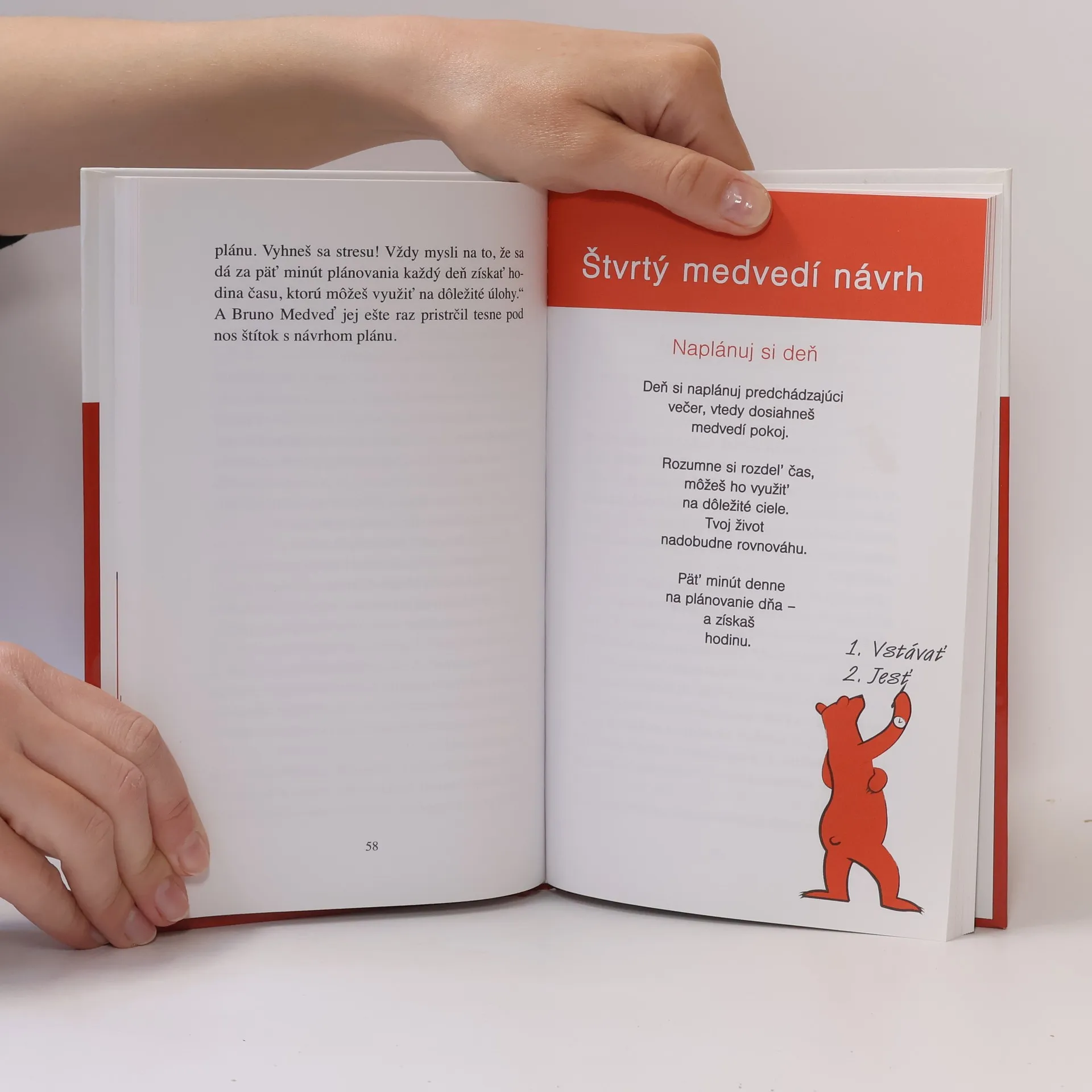 Úspešný program špičkového nemeckého experta v otázke využitia a organizácie času. Šarmantná bájka o tom, ako sa poučiť z múdrosti medveďov a ich typických vlastností tak, aby sme suverénne zvládli požiadavky uponáhľaných dní, našli životný cieľ, robili to, čo nás teší a čo najlepšie vieme a uskutočnili vlastné túžby a želania.