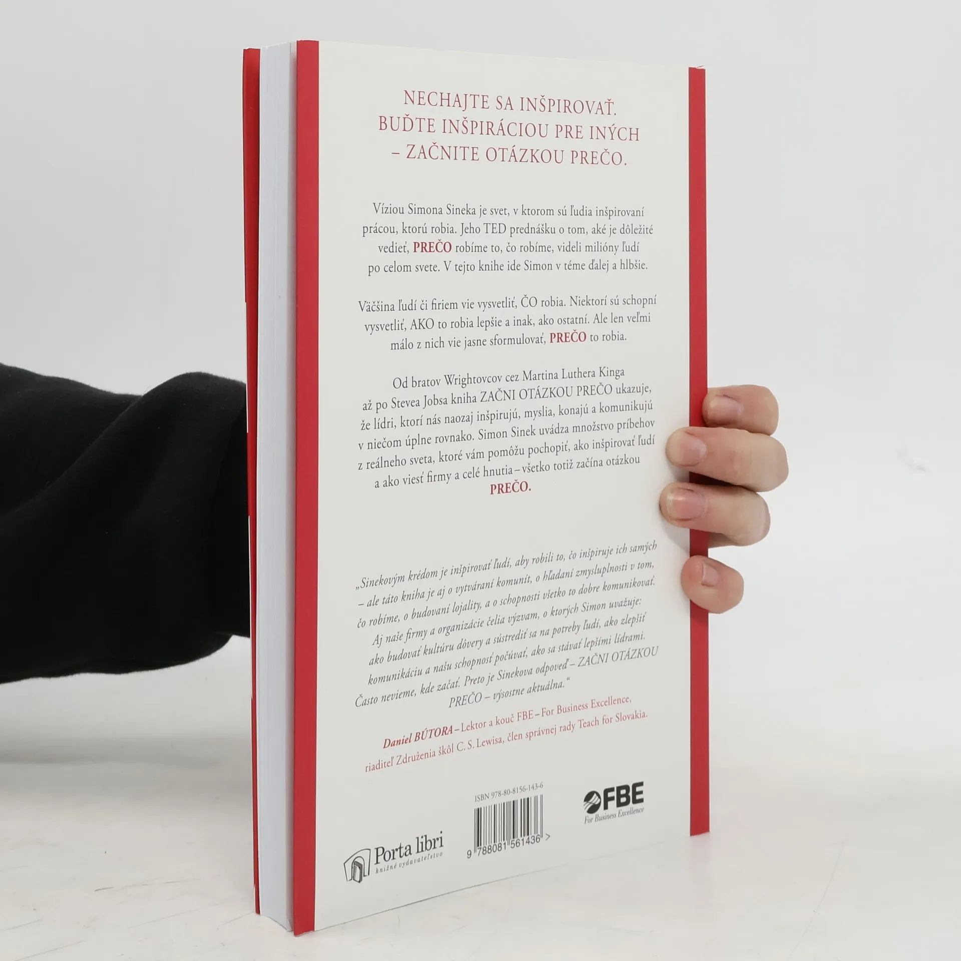 Víziou Simona Sineka je svet, v ktorom sú ľudia inšpirovaní prácou, ktorú robia. Jeho TED prednášku o tom, aké je dôležité vedieť, PREČO robíme to, čo robíme, videli milióny ľudí po celom svete. V tejto knihe ide Simon v téme ďalej a hlbšie. Väčšina ľudí či firiem vie vysvetliť, ČO robia. Niektorí sú schopní vysvetliť, AKO to robia lepšie a inak, ako ostatní. Ale len veľmi málo z nich vie jasne sformulovať, PREČO to robia. Od bratov Wrightovcov cez Martina Luthera Kinga až po Stevea Jobsa kniha Začni otázkou prečo ukazuje, že lídri, ktorí nás naozaj inšpirujú, myslia, konajú a komunikujú v niečom úplne rovnako. Simon Sinek uvádza množstvo príbehov z reálneho sveta, ktoré vám pomôžu pochopiť, ako inšpirovať ľudí a ako viesť firmy a celé hnutia – všetko totiž začína otázkou PREČO.