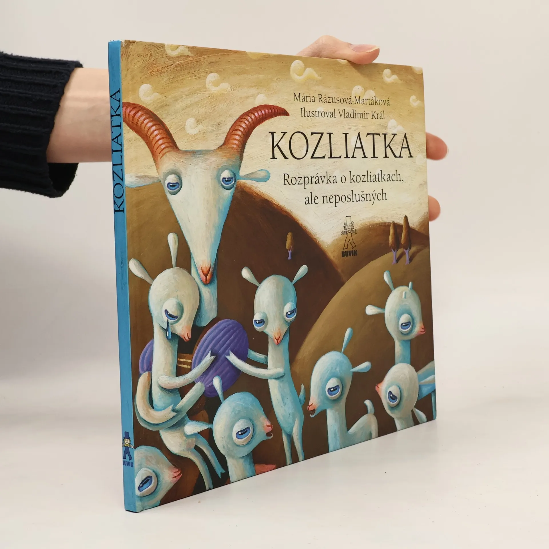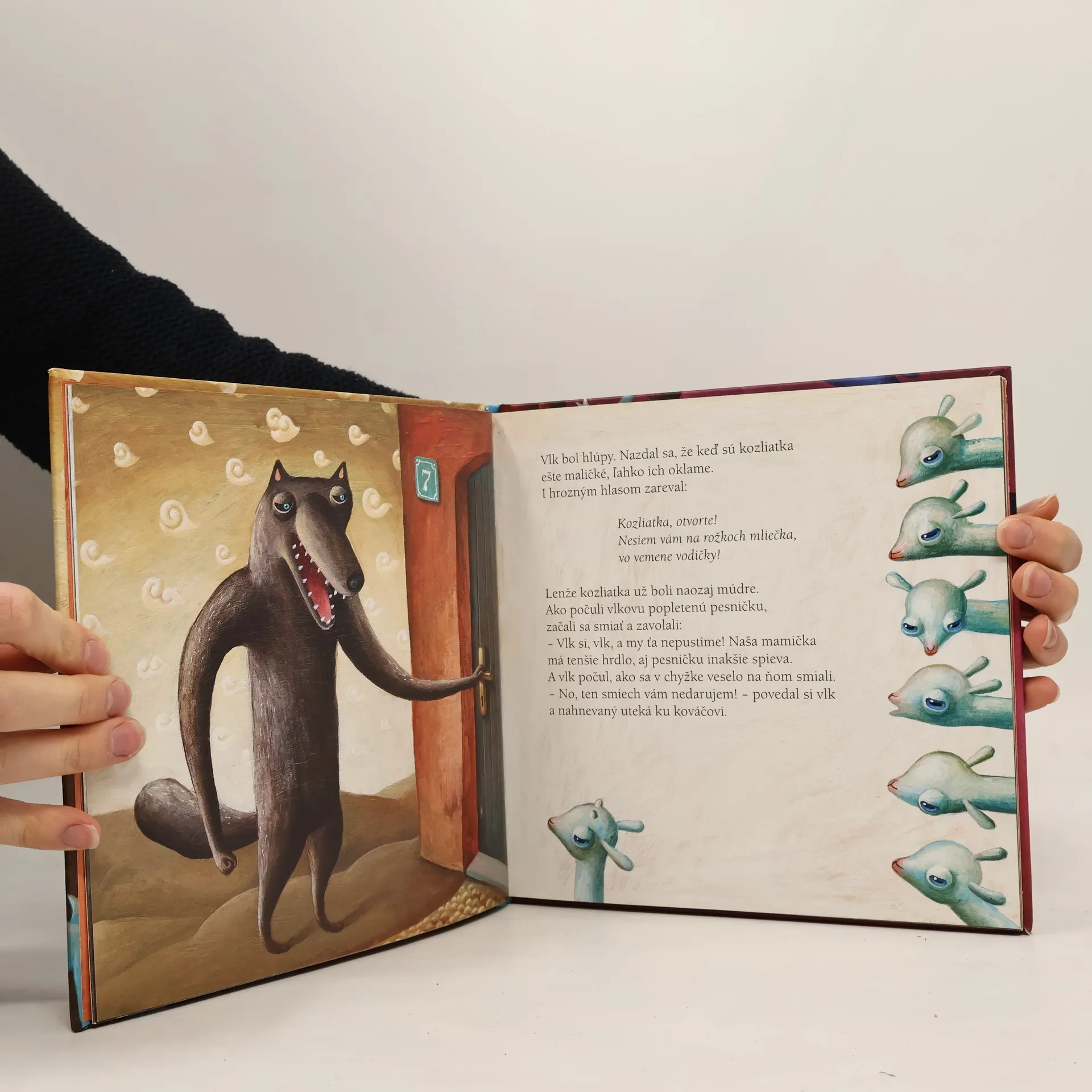 Známu rozprávku o neposlušných kozliatkach a zlom vlkovi napísala Mária Rázusová-Martáková. Jaroslava Blažková zasa vymyslela rozprávku o poslušných kozliatkach, ktorým je sveta žiť. Smejú sa na hlúpom vlkovi a jeho popletenej pesničke. Zato, že boli poslušné, mamička im kúpi krásne čižmičky: červené na predné nožičky, zelené na zadné. Obidve rozprávky filigránsky spojené do jednej knihy ilustroval vynikajúci ilustrátor Vladimír Král.
