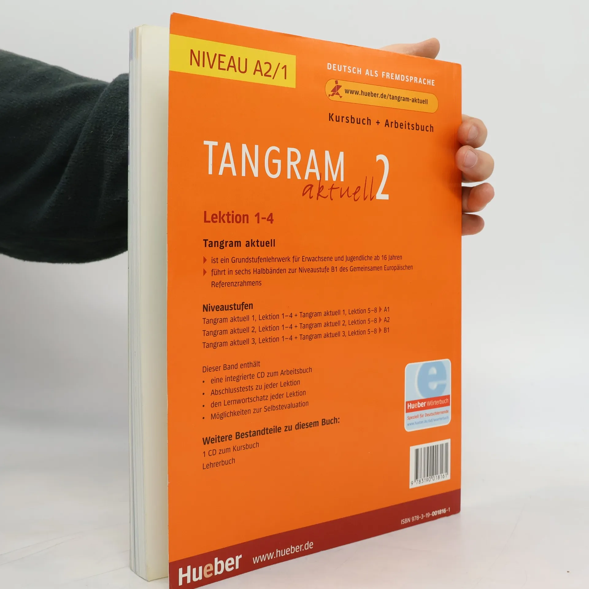 Zielniveau A2.1. Tangram aktuell ist die überarbeitete Ausgabe von Tangram und orientiert sich an den Vorgaben des Referenzrahmens. Das Lehrwerk bereitet auf die Prüfungen Start Deutsch 1 und 2 sowie auf das Zertifikat Deutsch vor. Es richtet sich an Erwachsene und Jugendliche ab 16 Jahren in Grundstufenkursen (A1-B1) weltweit. Lernende erreichen die Niveaustufen A1, A2 und B1 und können die deutsche Sprache aktiv und kreativ anwenden, was die Ziele des Gemeinsamen Europäischen Referenzrahmens unterstützt: kommunikative Kompetenz und sprachliche Handlungsfähigkeit. Jeder Band bietet Material für 50-80 Unterrichtseinheiten. Für die Zertifikatsvorbereitung gibt es zusätzlich Tangram Z mit Material für 80-120 Unterrichtseinheiten. Das Kursbuch enthält authentische Hör- und Lesetexte sowie vielfältige Übungen, die an der Alltagssprache orientiert sind und zur kreativen Auseinandersetzung anregen. Strategien für alle Fertigkeiten (Hören, Lesen, Sprechen, Schreiben) werden von Anfang an vermittelt. Neue grammatische Phänomene werden durch gelenkte Selbstentdeckung erarbeitet. Die phonetische Kompetenz wird durch eine Mischung aus imitativen, kognitiven und kommunikativen Elementen gefördert. Das Arbeitsbuch bietet Struktur- und Wortschatzübungen sowie Tests zur Selbstkontrolle des Lernfortschritts. Am Ende jeder Lektion gibt es ei