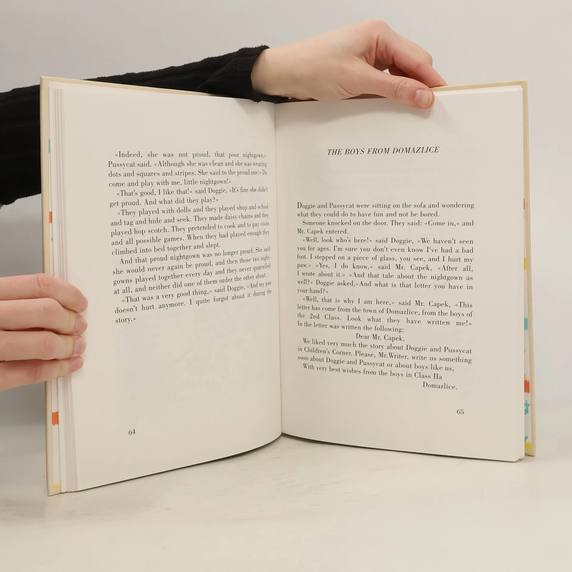 All About Doggie and Pussycat: How They Kept House and All Sorts of Other Things As Well (Czech: Povídání o pejskovi a kočičce: Jak spolu hospodařili a ještě o všelijakých jiných věcech) is a charming Czech children’s book about a dog and a cat who live together in a house and wish to do everything as people do. They bake a cake, wash their floor, go for a Sunday stroll, and write letters. However, since they are a dog and a cat and not people, things do not always go as they wish. The book, which is considered a classic of children’s literature in the Czech Republic, was written and illustrated by the Czech author Josef Čapek. * Povídání o pejskovi a kočičce – Jak spolu hospodařili a ještě o všelijakých jiných věcech. Veselá vyprávění o dvou nerozlučných kamarádech, která potěšila již několik generací čtenářů. Povídání o tom, jak pejsek a kočička myli podlahu, jak pekli dort nebo o tom, jak si pejsek roztrhl kalhoty a kočička mu je zašila dešťovkou, si čítávali už prarodiče dnešních dětí. Autorův laskavý humor, kterým si bere na mušku drobné dětské nectnosti, jeho vcítění do dětského myšlení a krásný vroucný jazyk tvoří tuto milou knížku nesmrtelnou.