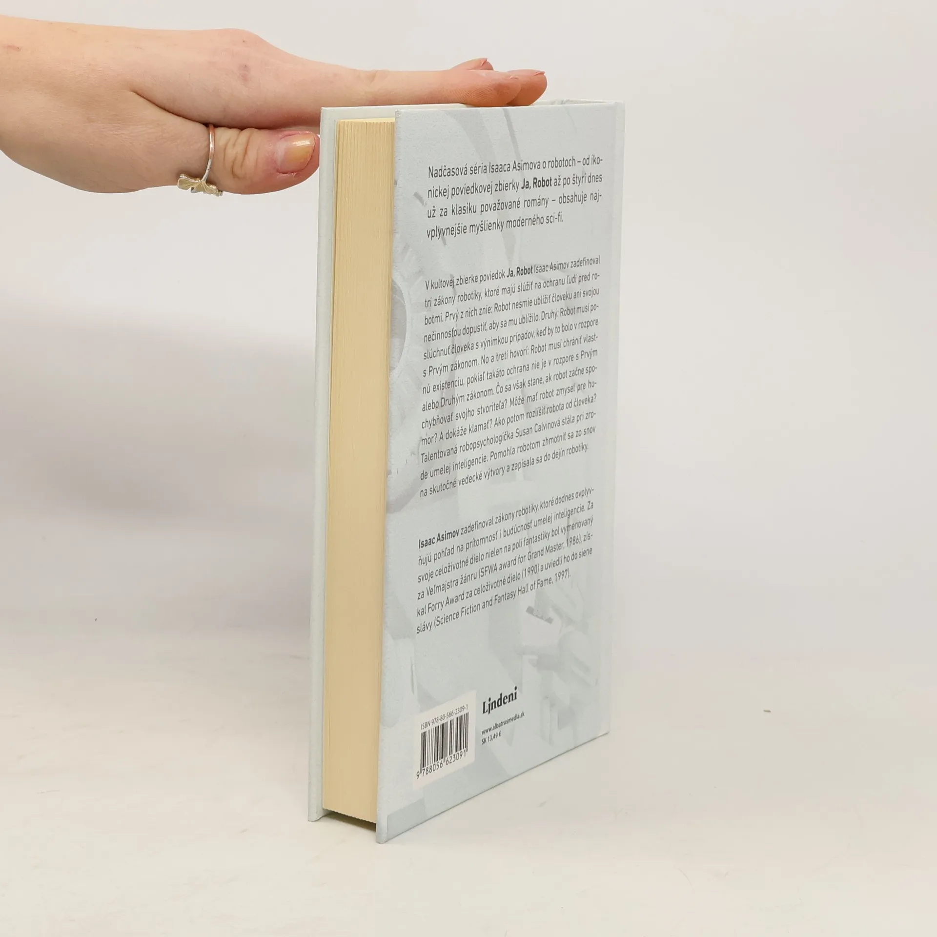 Majstrovský kultový román o ľudskosti, robotike a hlbokej sonde do zmyslu života. Nadčasová séria Isaaca Asimova o robotoch – od ikonickej poviedkovej zbierky Ja, Robot až po štyri dnes už za klasiku považované romány – obsahuje najvplyvnejšie myšlienky moderného sci-fi. Asimov zadefinoval zákony robotiky, ktoré dodnes ovplyvňujú pohľad na prítomnosť i budúcnosť umelej inteligencie. V kultovej zbierke poviedok Ja, Robot Isaac Asimov zadefinoval tri zákony robotiky, ktoré majú slúžiť na ochranu ľudí pred robotmi. Prvý z nich znie: Robot nesmie ublížiť človeku ani svojou nečinnosťou dopustiť, aby sa mu ublížilo. Druhý: Robot musí poslúchnuť človeka s výnimkou prípadov, keď by to bolo v rozpore s Prvým zákonom. No a tretí hovorí: Robot musí chrániť vlastnú existenciu, pokiaľ takáto ochrana nie je v rozpore s Prvým alebo Druhým zákonom. Čo sa však stane, ak robot začne spochybňovať svojho stvoriteľa? Môže mať robot zmysel pre humor? A dokáže klamať? Ako potom rozlíšiť robota od človeka? Talentovaná robopsychologička Susan Calvinová stála pri zrode umelej inteligencie. Pomohla robotom zhmotniť sa zo snov na skutočné vedecké výtvory a zapísala sa do dejín robotiky.